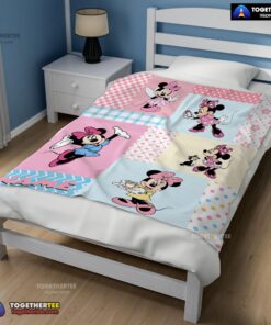 Official Disney Minnie Mouse Patchwork Pattern Blanket Fleece Customized Blanket