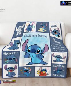 Official Disney Playful Stitch Collage Blanket Fleece Customized Blanket
