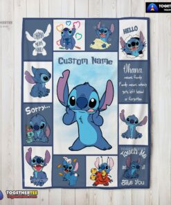 Official Disney Playful Stitch Collage Blanket Fleece Customized Blanket