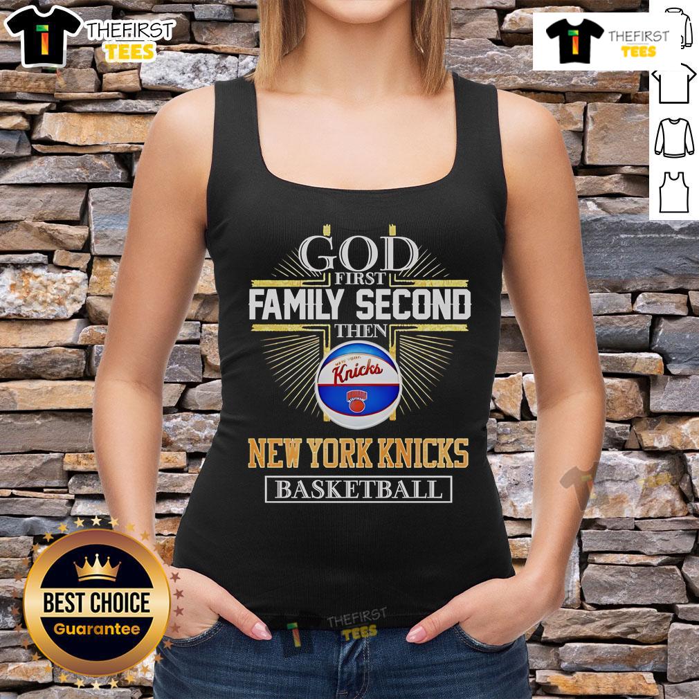 Official God First Family Second Then New York Knicks Basketball Cross T-Shirt
