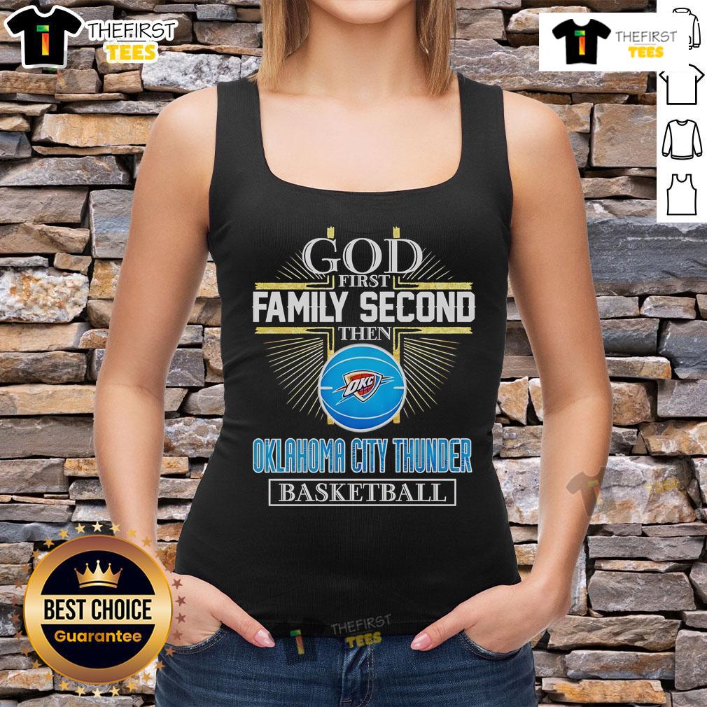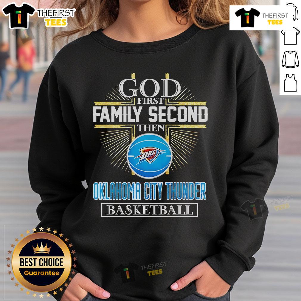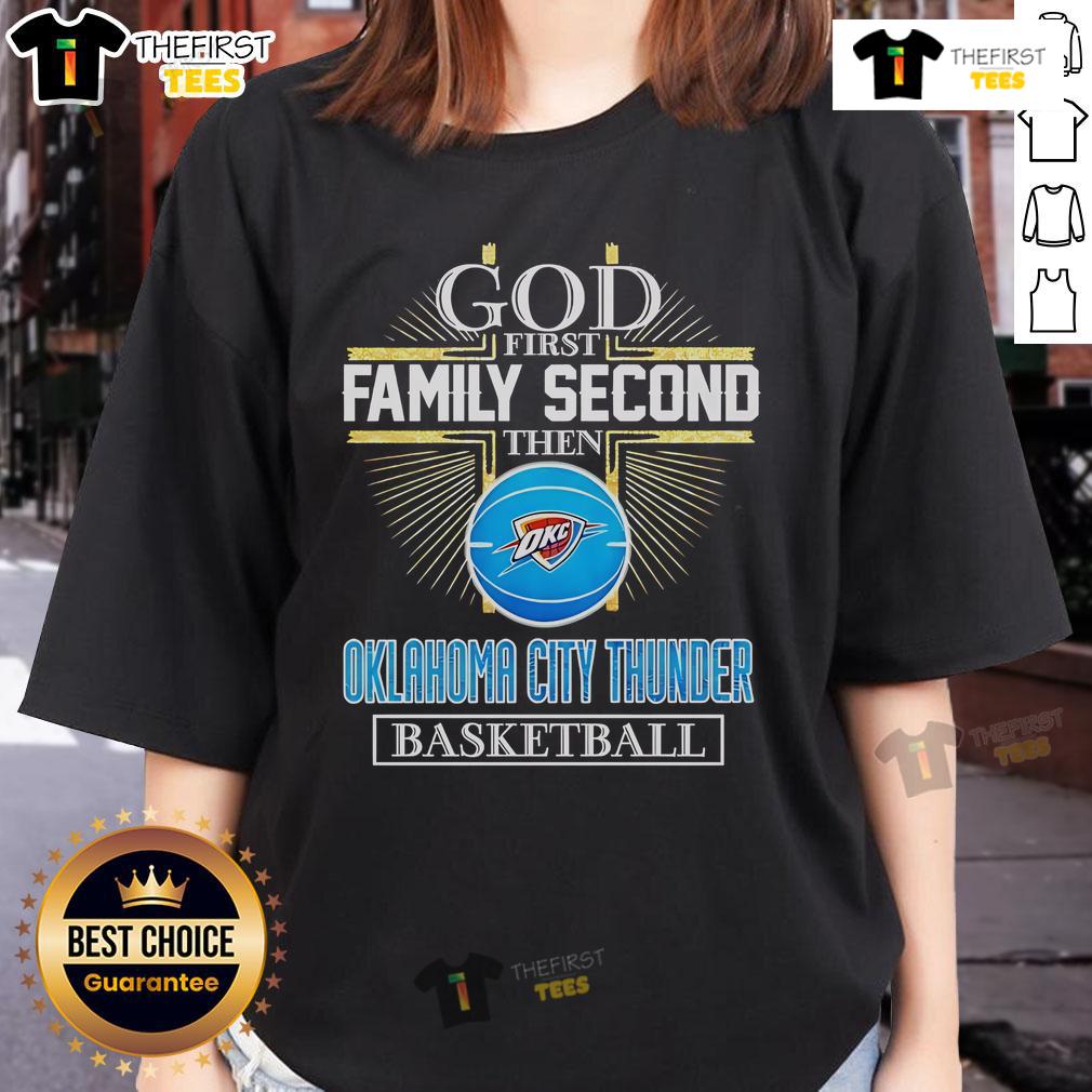 Official God First Family Second Then Oklahoma City Thunder Basketball Cross T-Shirt