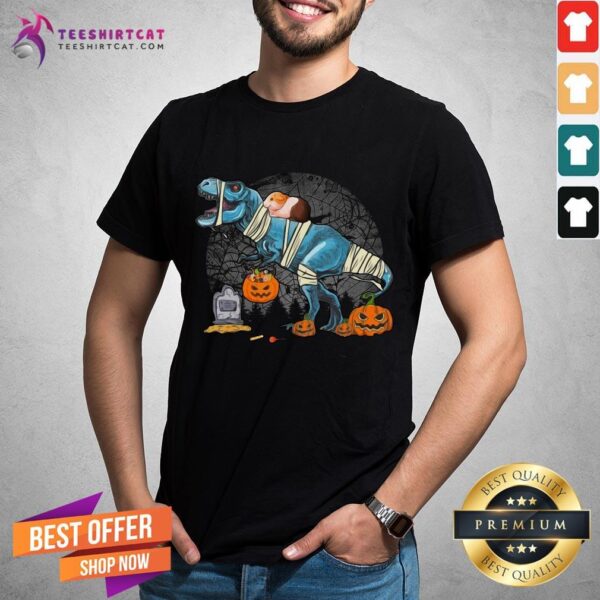 Official Guinea Pig Riding Mummy T Rex Dino Funny Halloween Costume Shirt