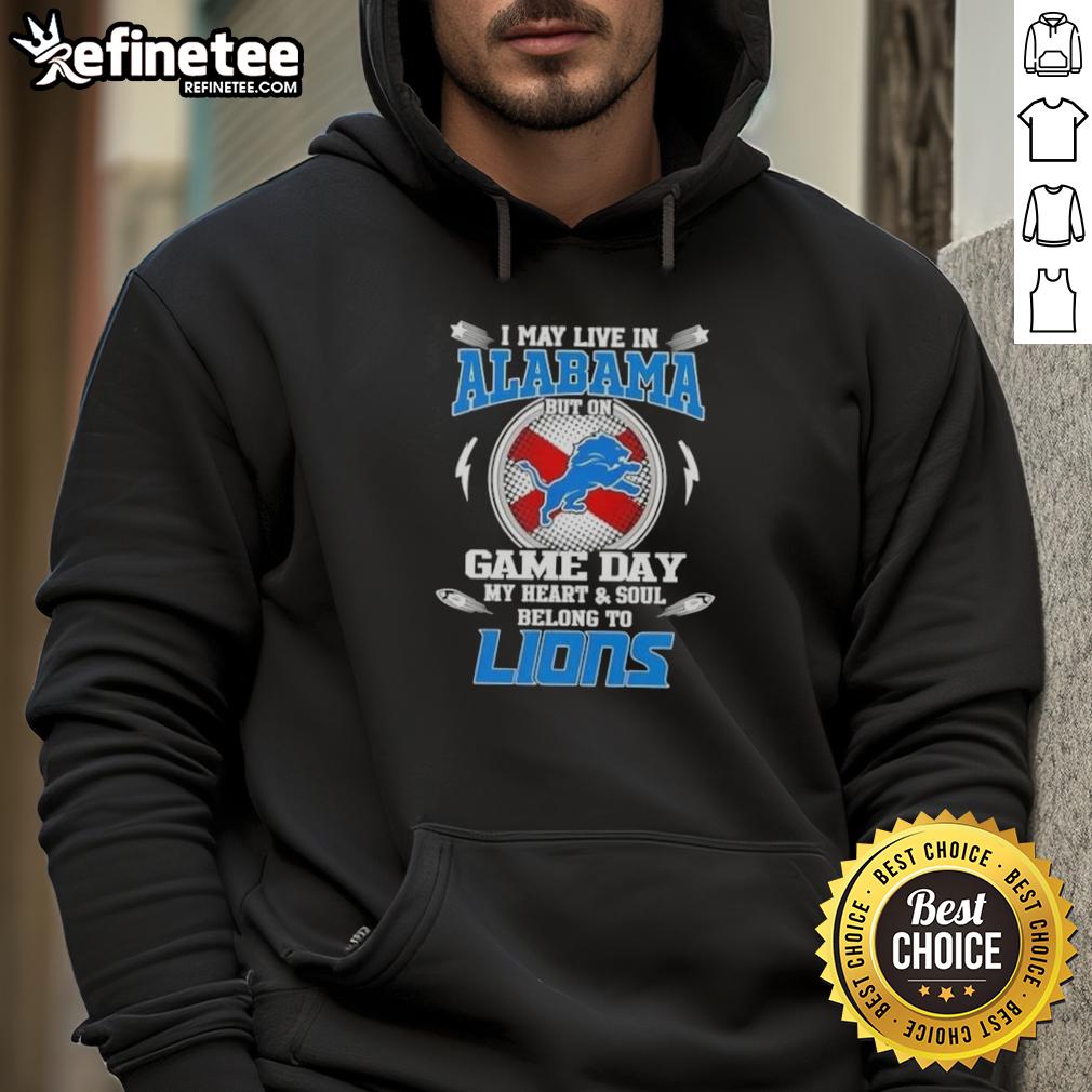 Official I May Live In Alabama But On Game Day My Heart And Soul Belongs To Detroit Lions T-Shirt