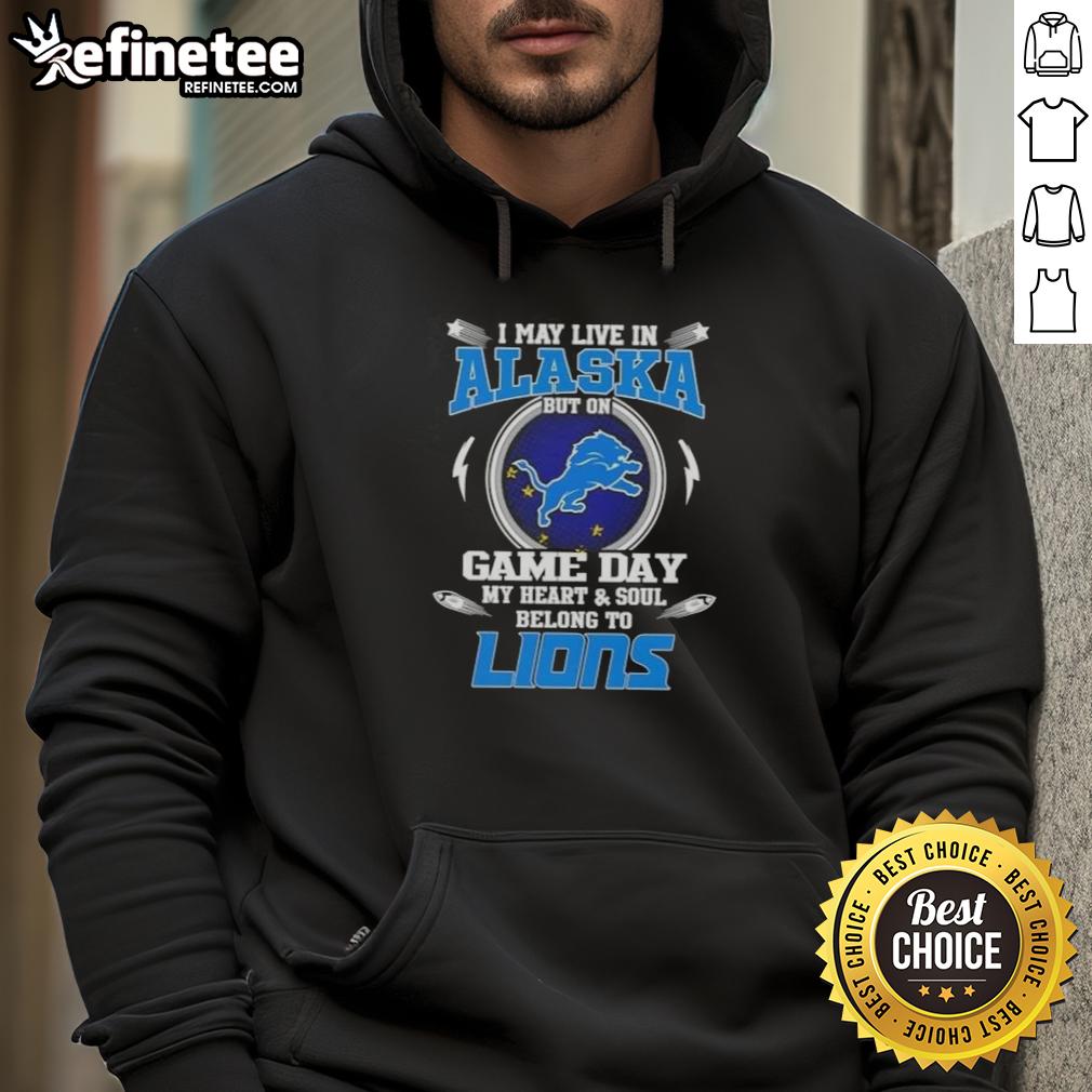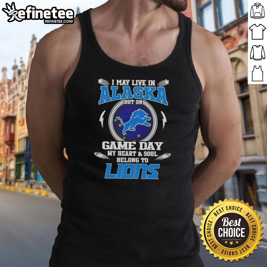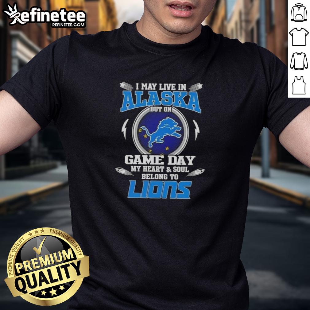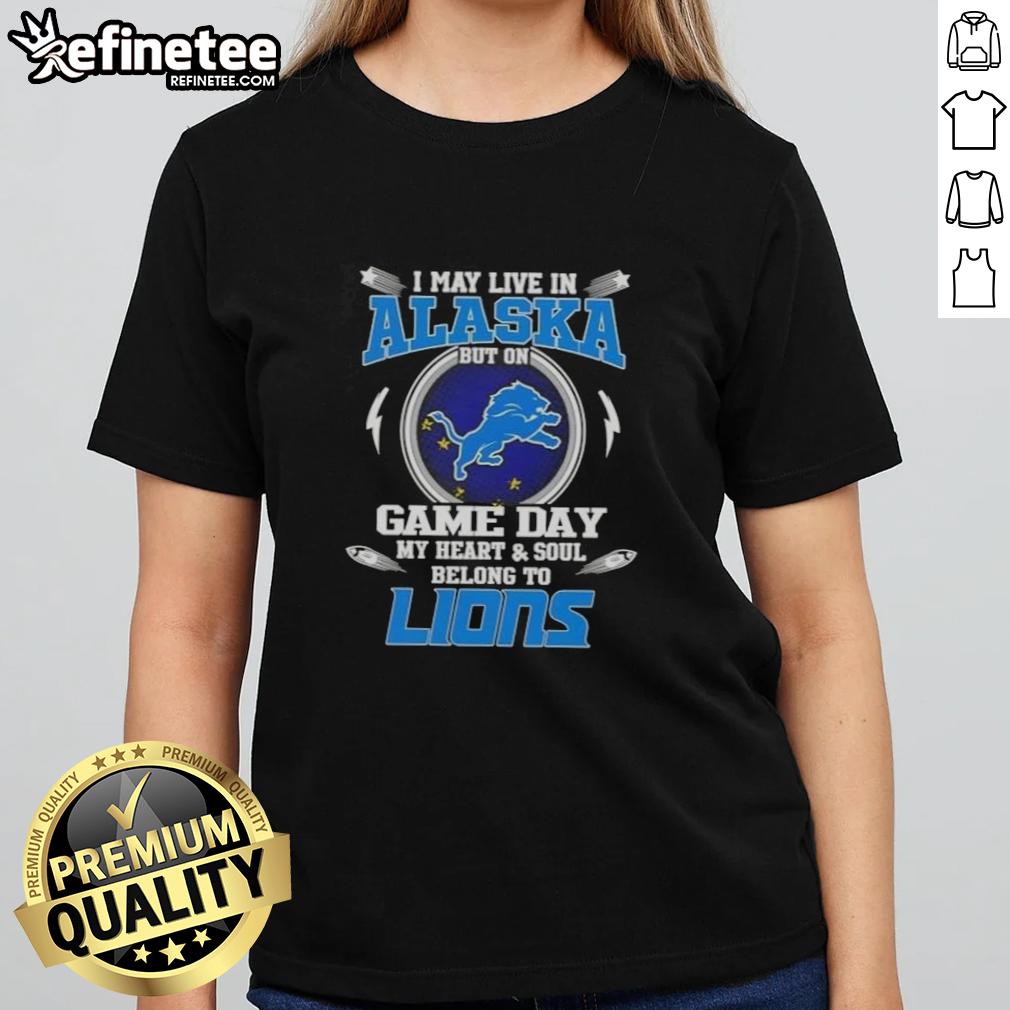 Official I May Live In Alaska But On Game Day My Heart And Soul Belongs To Detroit Lions T-Shirt