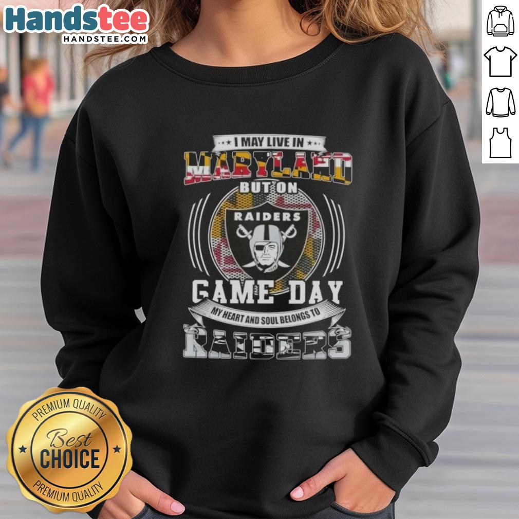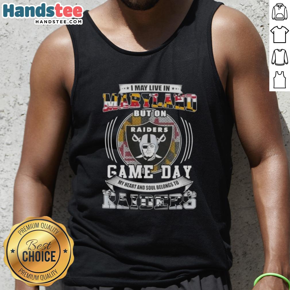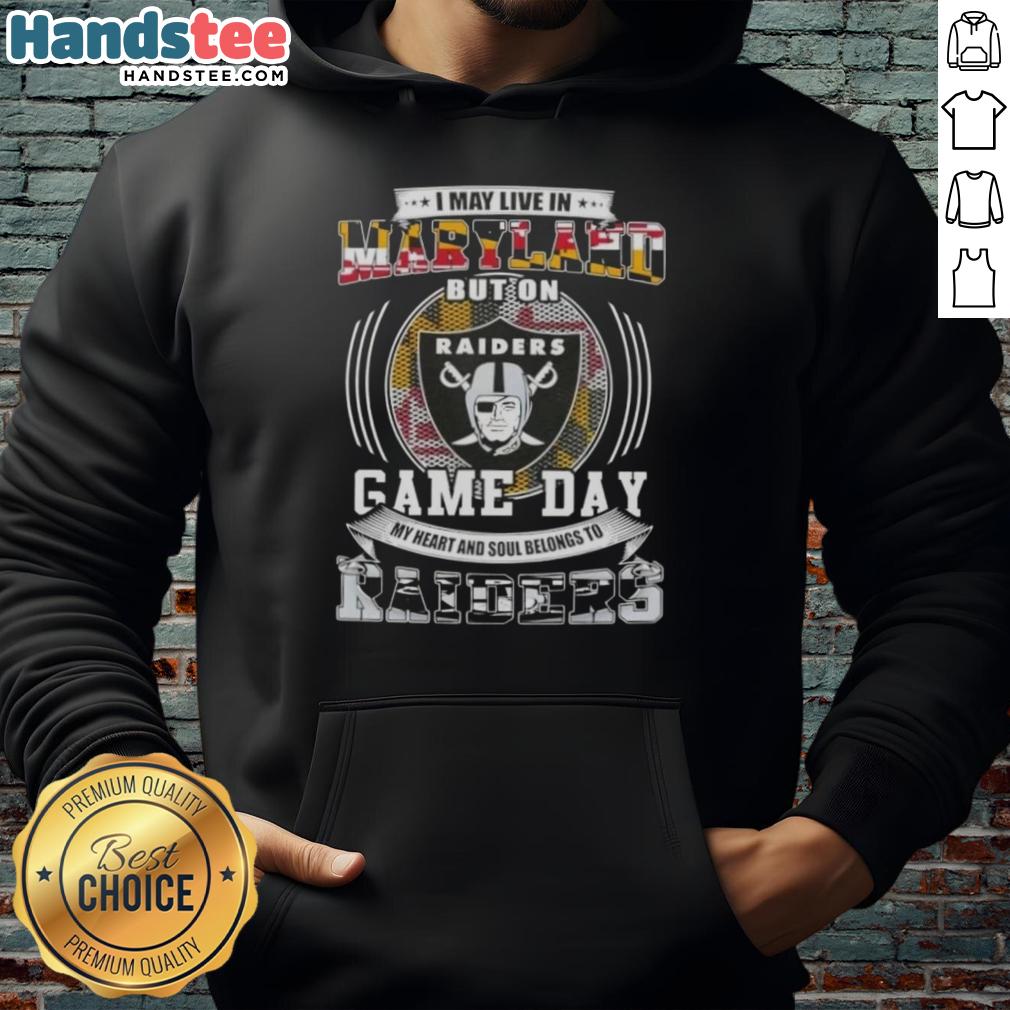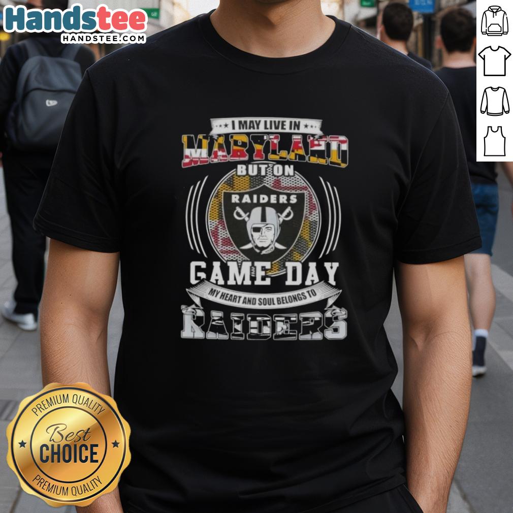 Official I May Live In Maryland But On Game Day My Heart And Soul Belongs To Las Vegas Raiders Football T-Shirt