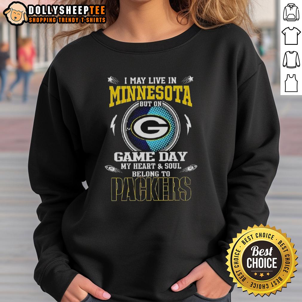 Official I May Live In Minnesota But On Game Day My Heart And Soul Belongs To Green Bay Packers T-Shirt