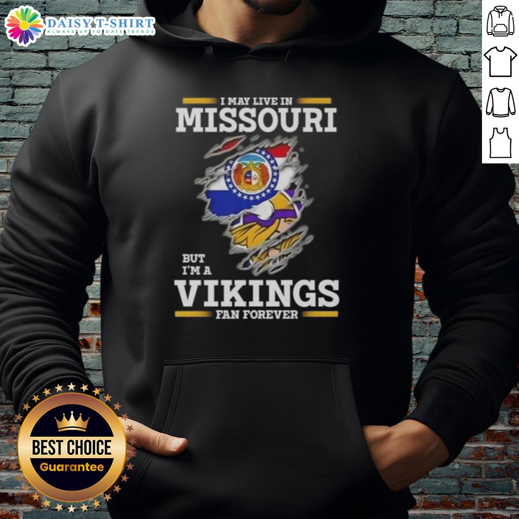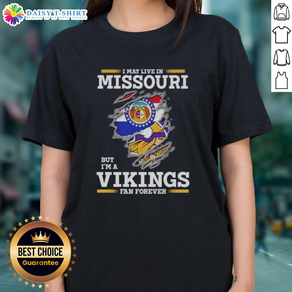 Official I May Live In Missouri But I’m A Minnesota Vikings Fan Forever T-Shirt