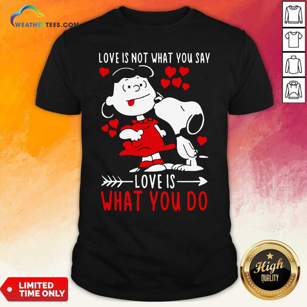 Official Lucy Van Pelt Snoopy Love Is Not What You Say Love Is What You Do Valentines Day Shirt