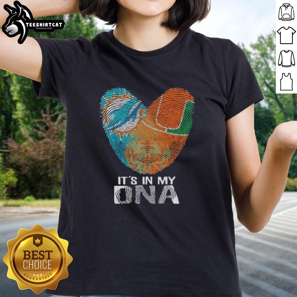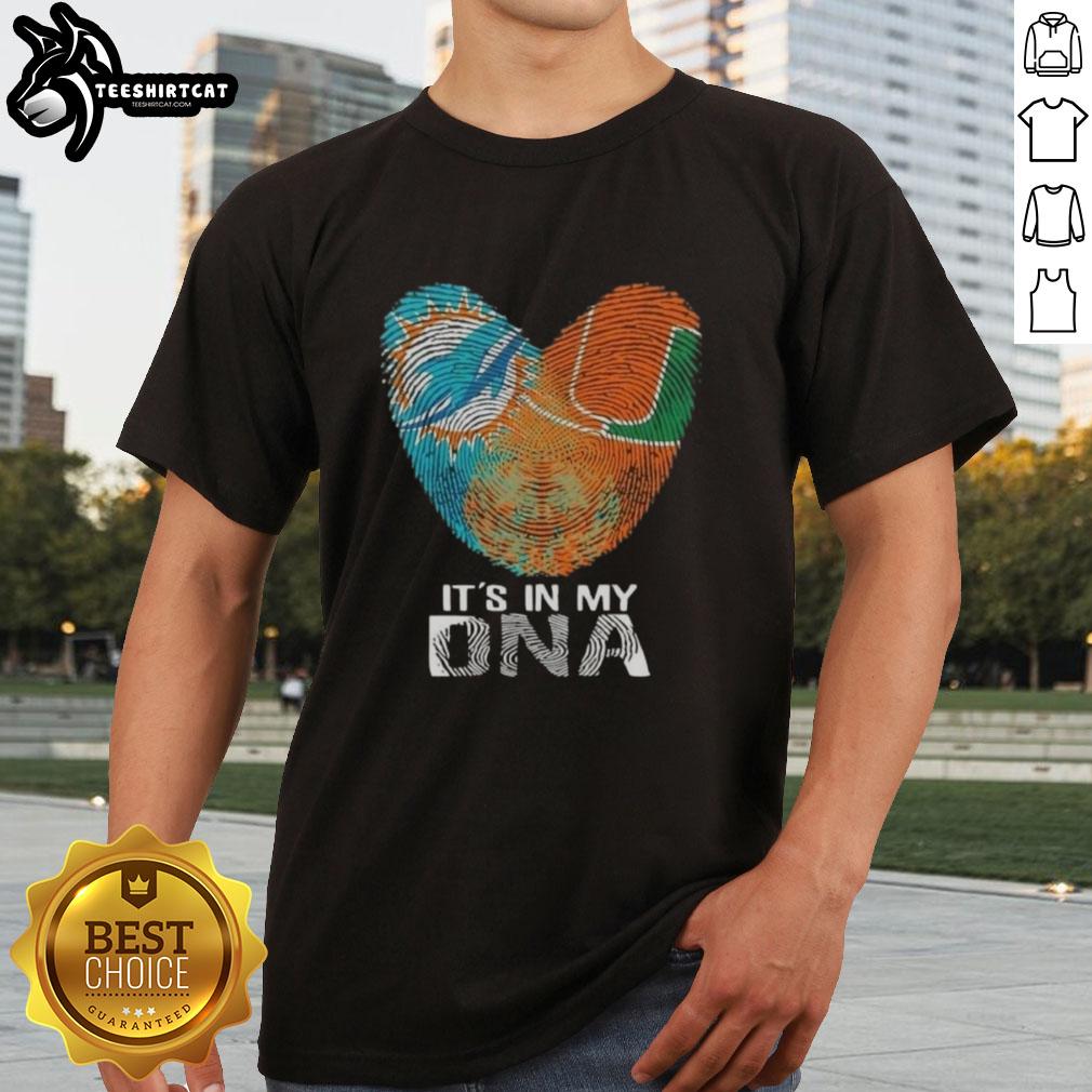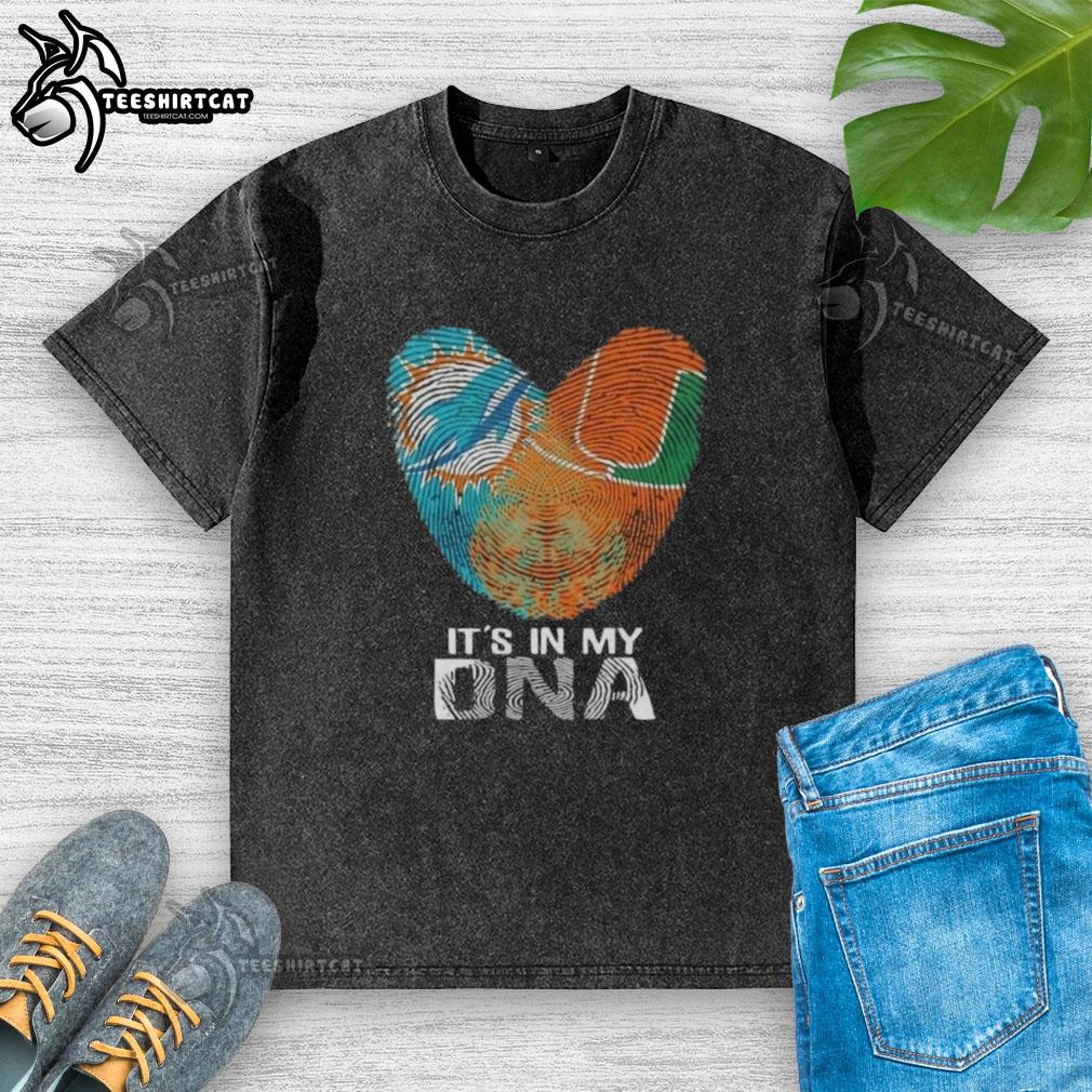 Official Miami City Sports Dolphins X Hurricanes It’s In My DNA Fingerprint Heart T-Shirt