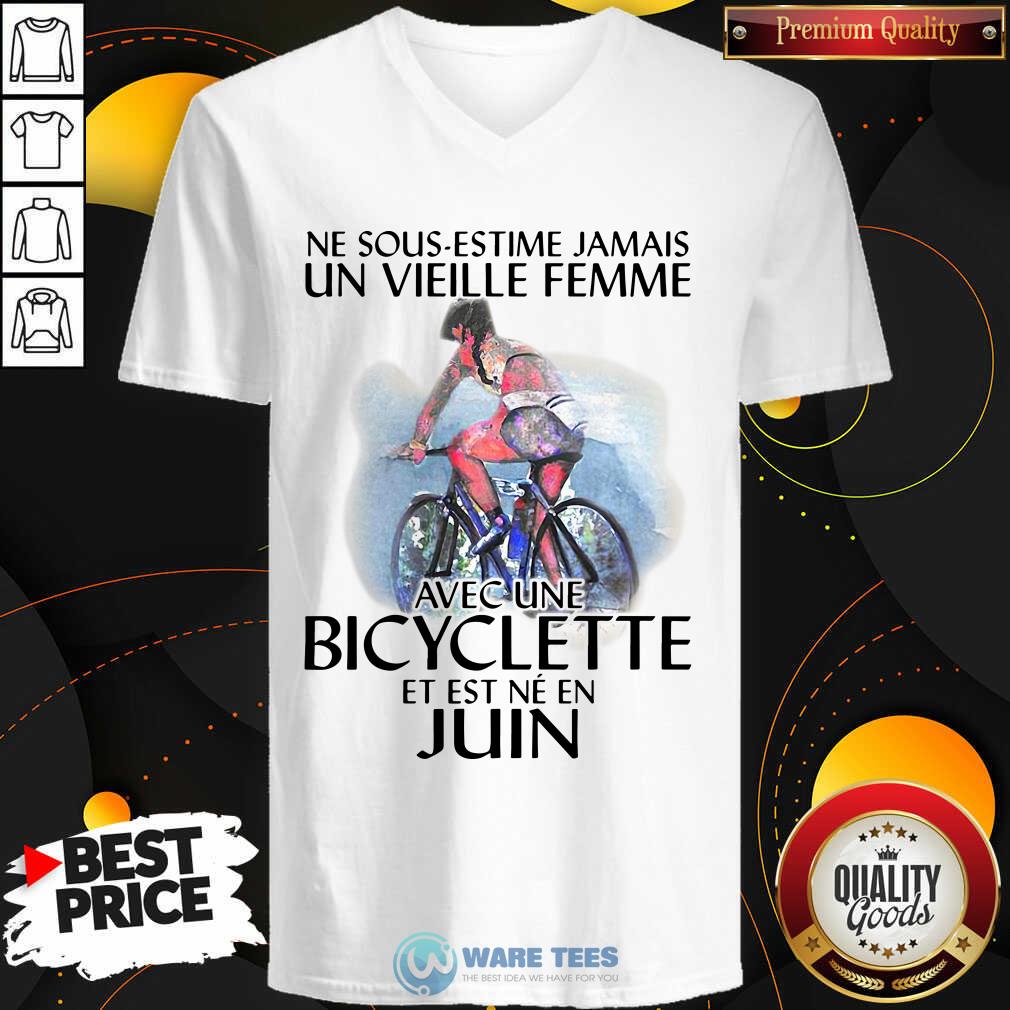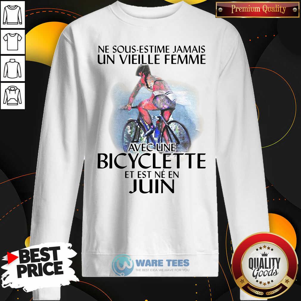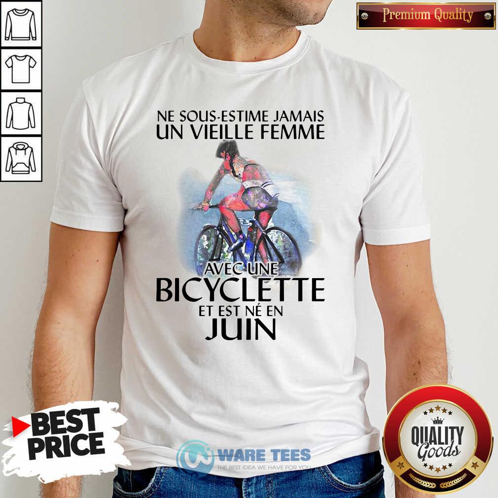 Official Ne Sous Estimez Jamais Un Vieille Femme Avec Une Bicyclette Et Est Ne En Juin Shirt