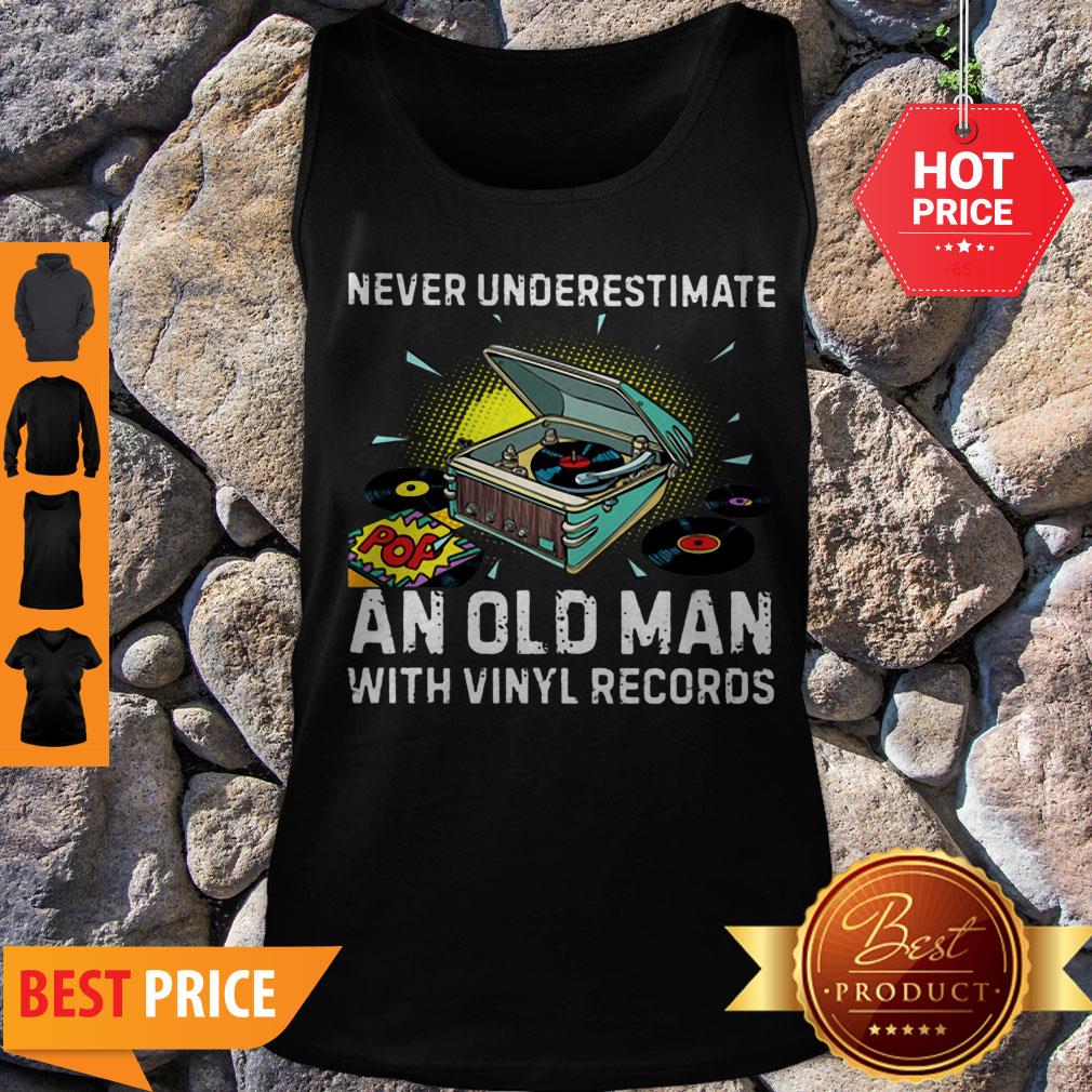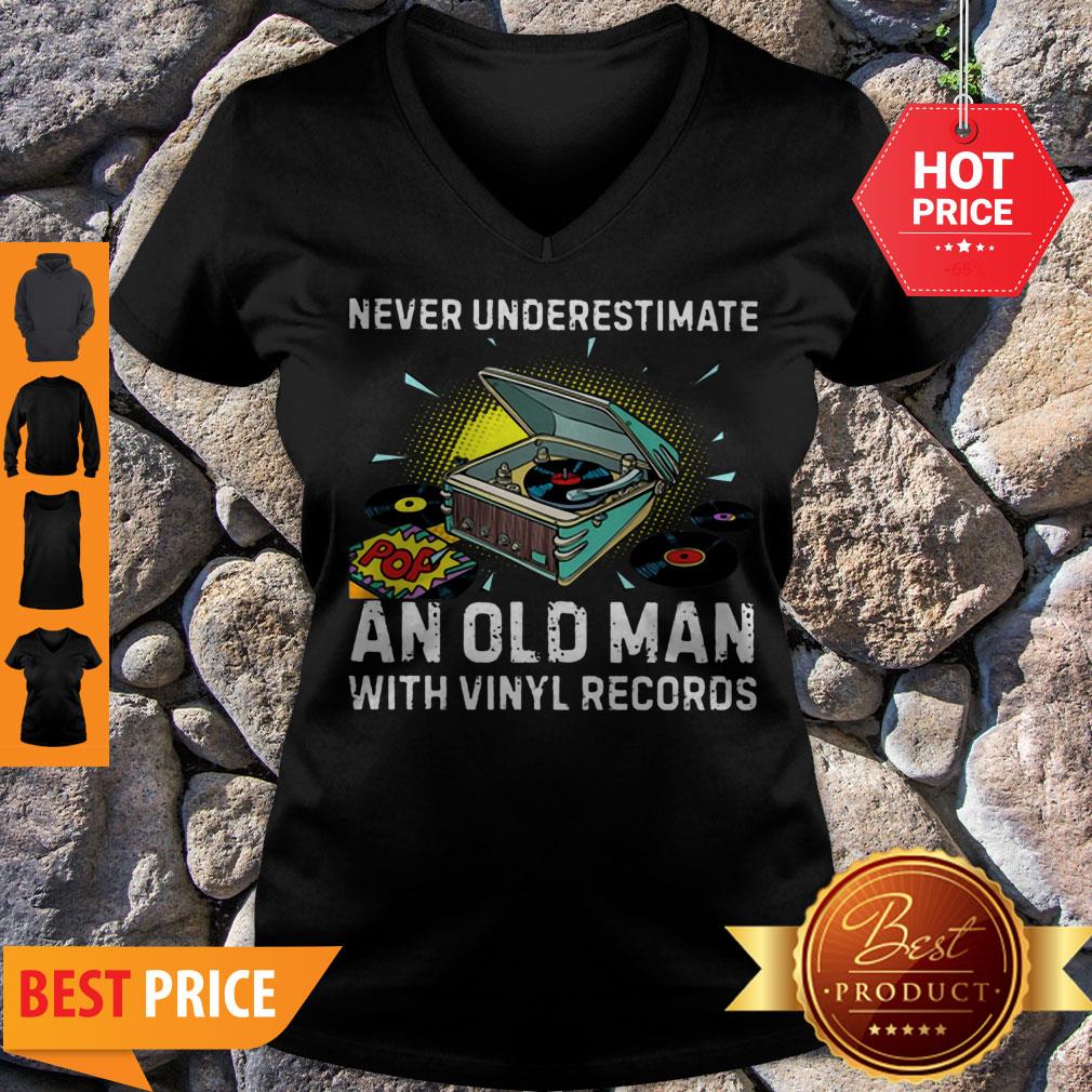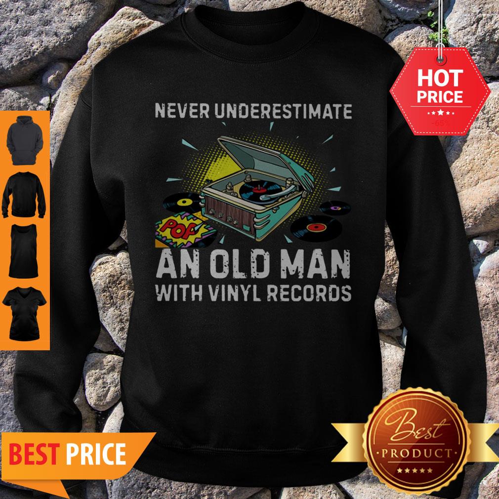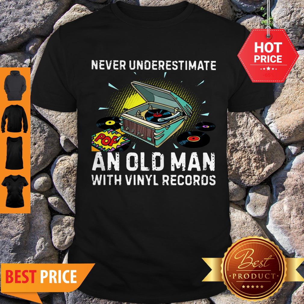 Official Never Underestimate Old Man With Vinyl Records Shirt