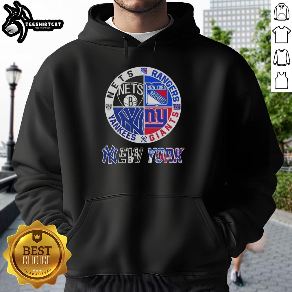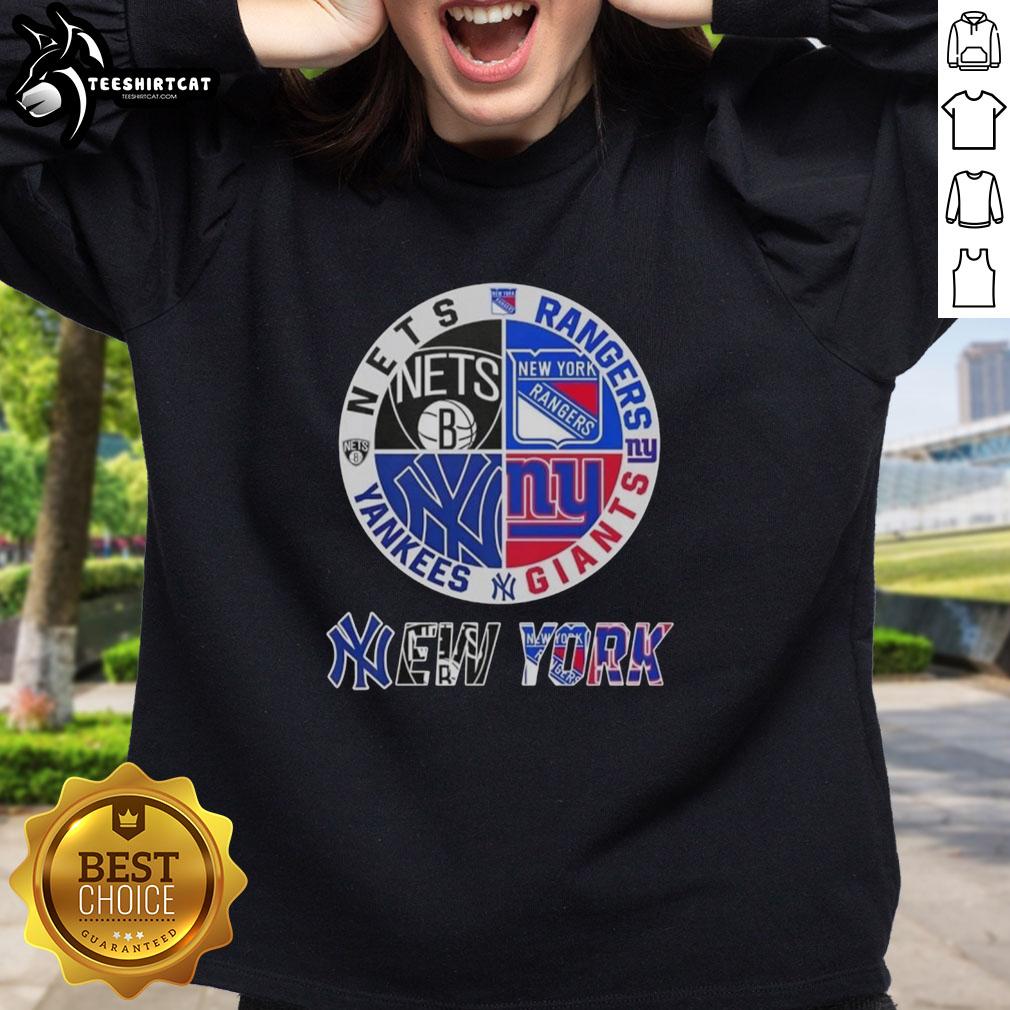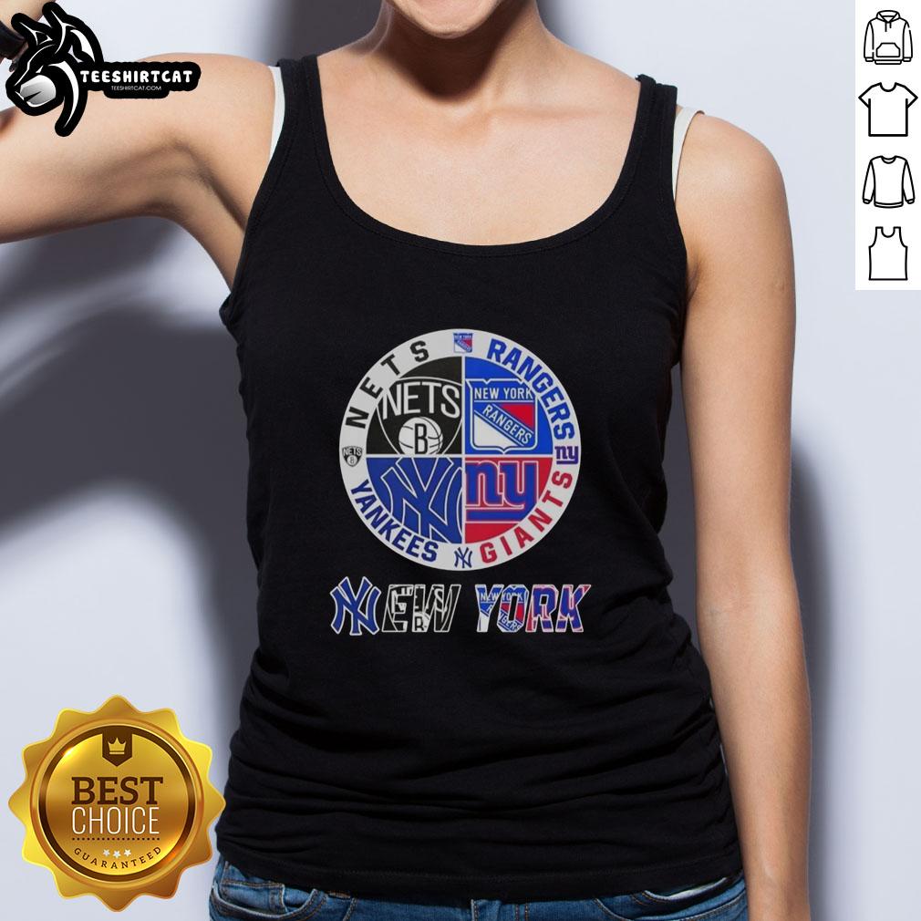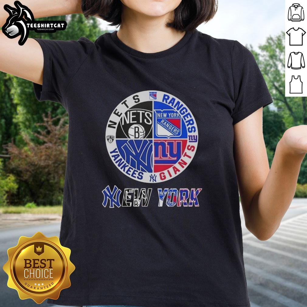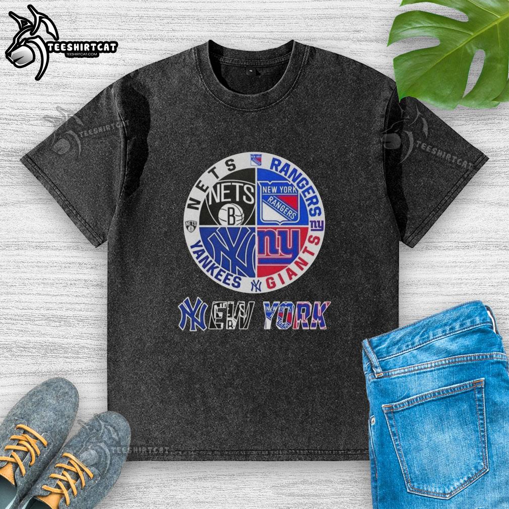 Official New York City Sports Nets Rangers Giants Yankees Logos Combine T-Shirt
