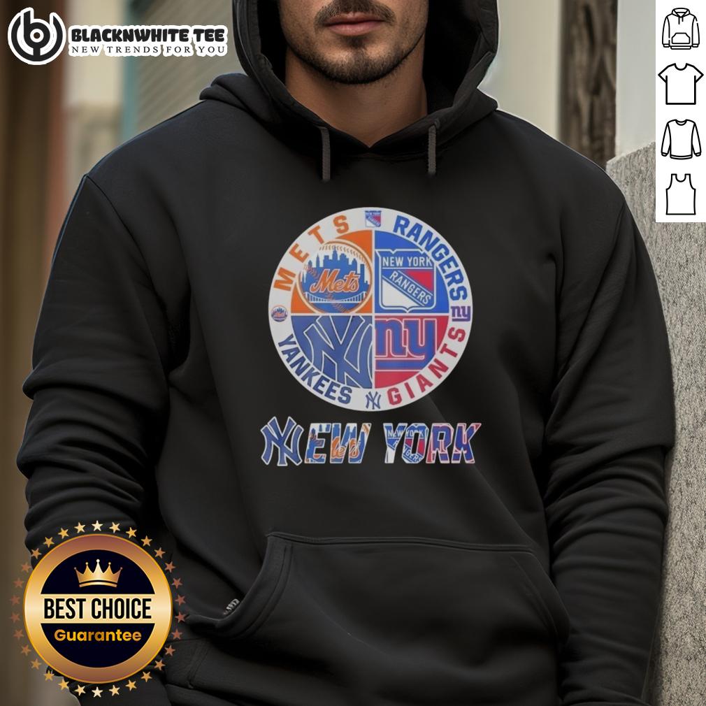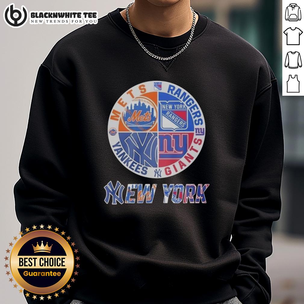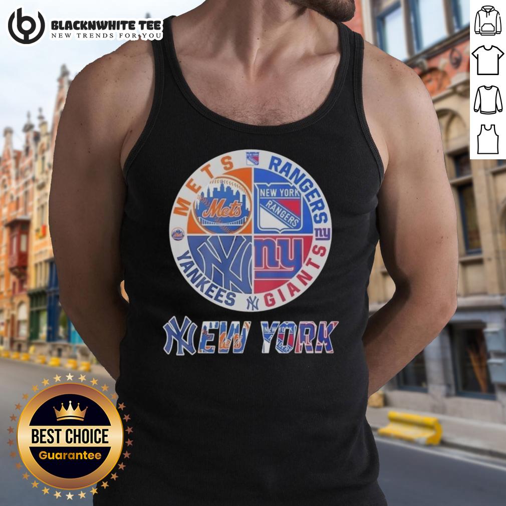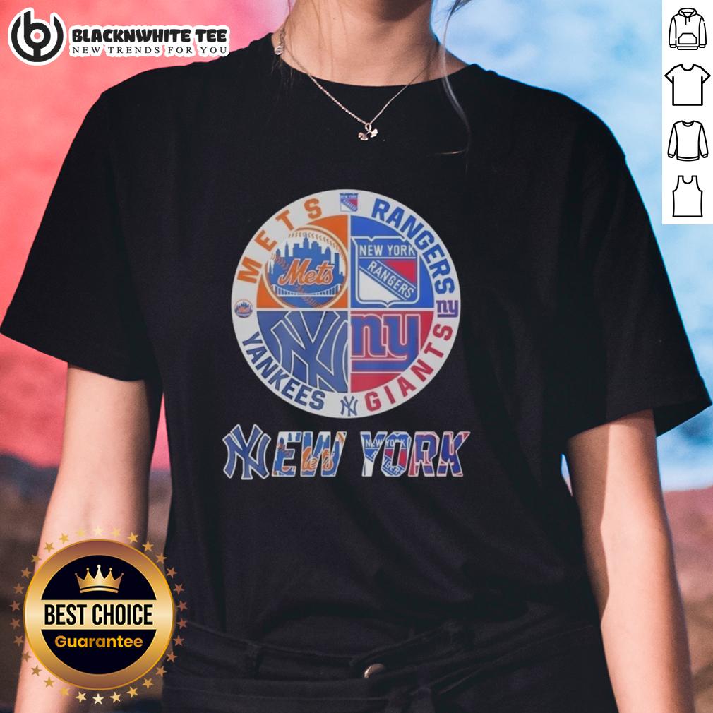 Official New York Mets New York Rangers New York Yankees New York Giants Mashup Logo T-Shirt