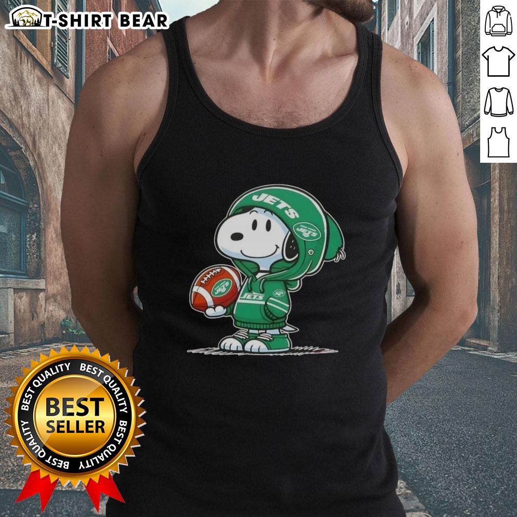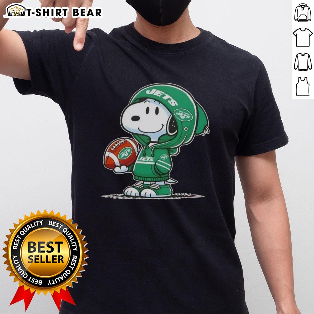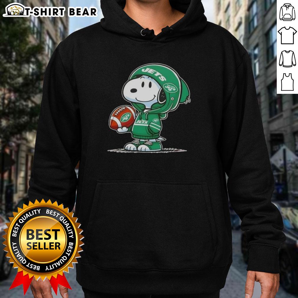 Official Peanuts Snoopy Wearing Hoodie New York Jets And Smilling At Fans T-Shirt