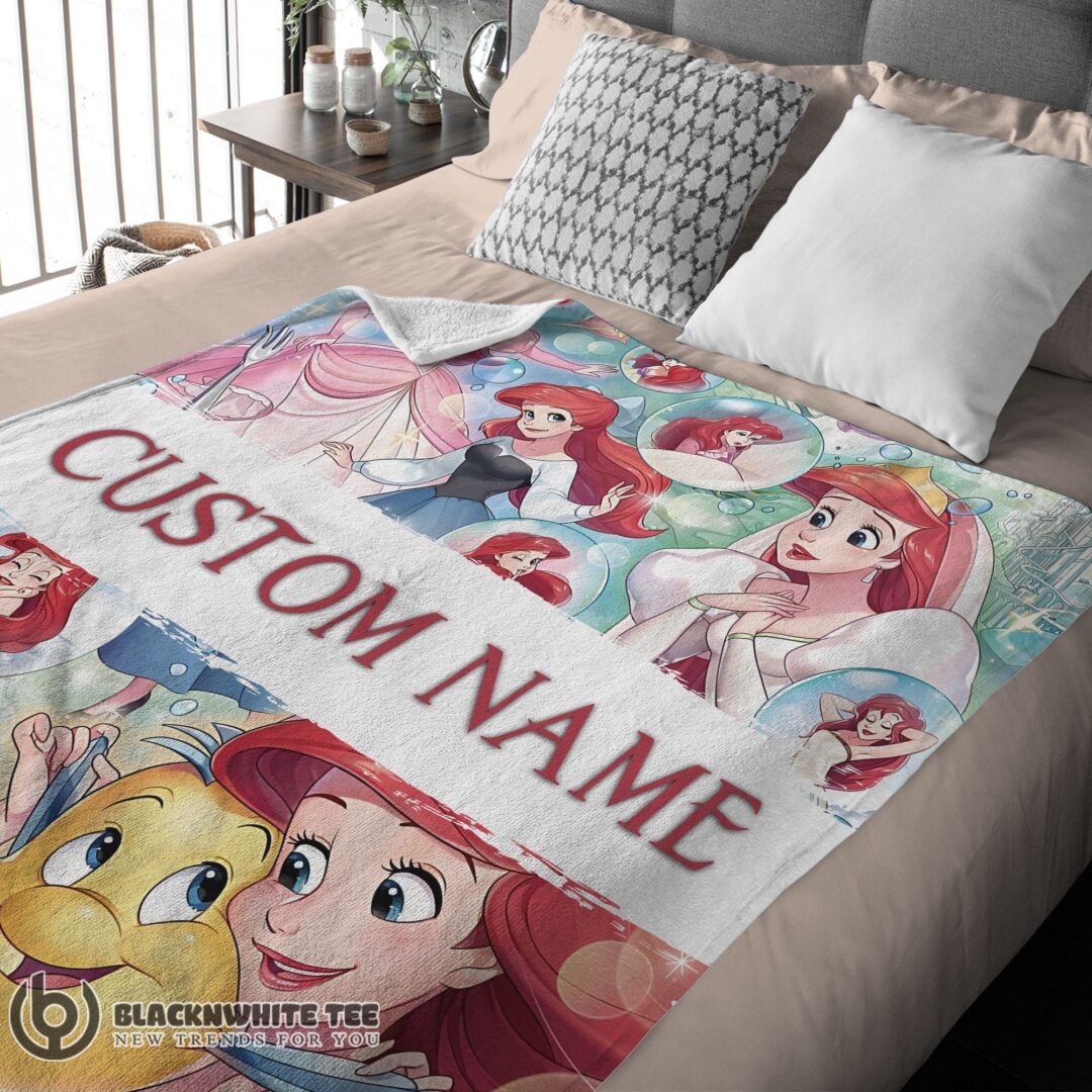 Official Premium The Little Mermaid Blanket Ariel Princess Fleece Family Princess Customized Blanket