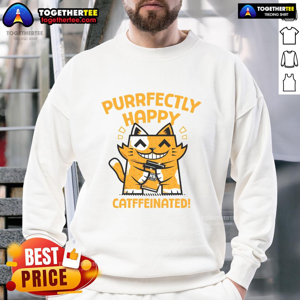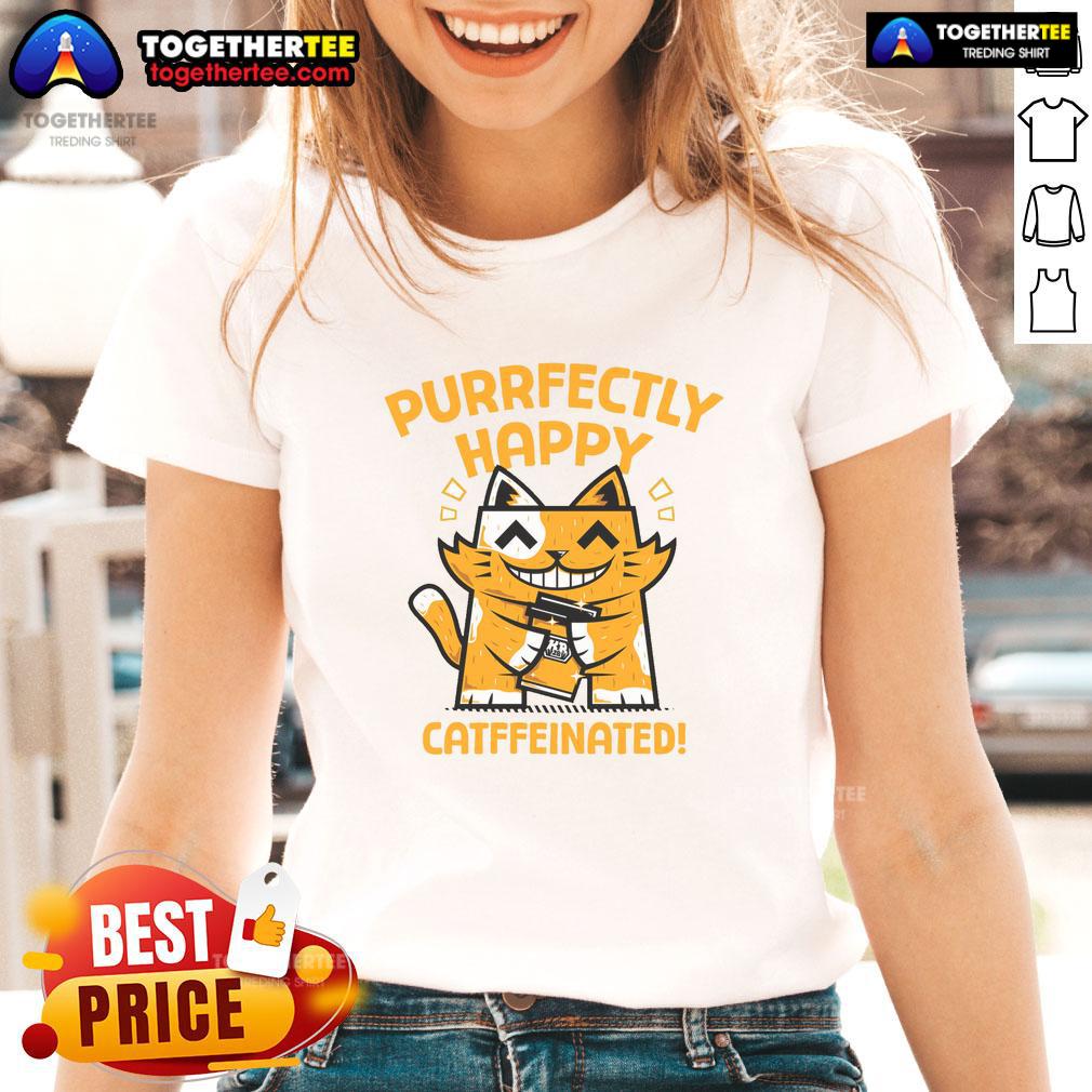 Official Purrfectly Happy Catffeinated Coffee Cat T-Shirt