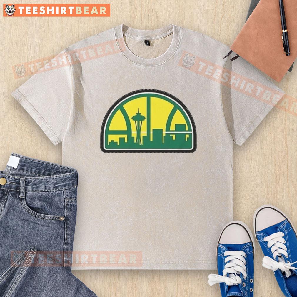 Official Seattle NBA Skyline Hardwood Logo T-Shirt