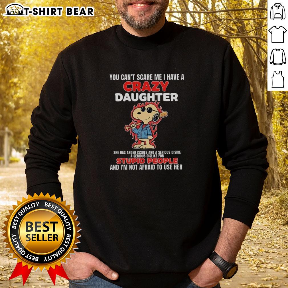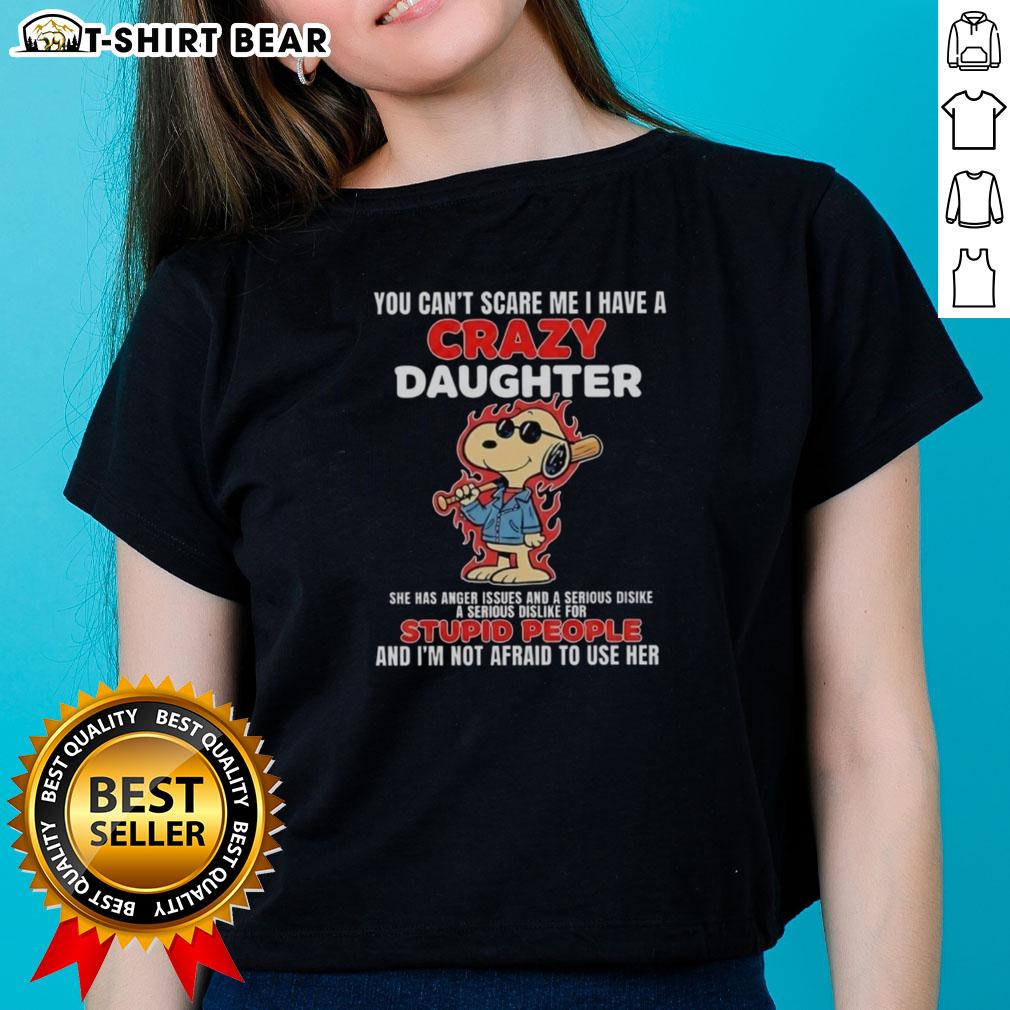 Official Snoopy Holding Bat Blazing Fire You Can’t Scare Me I Have A Crazy Daughter She Has Anger Issues T-Shirt