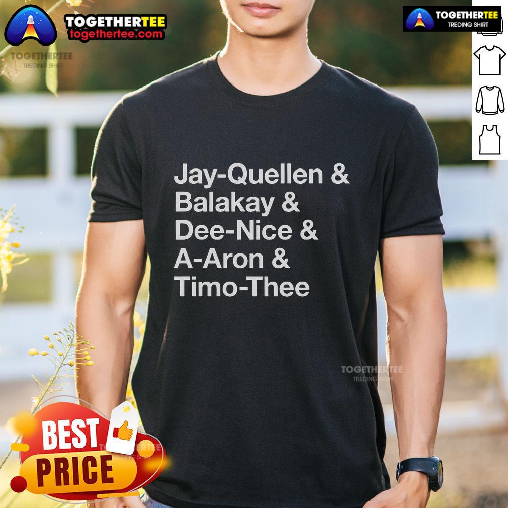 Official Substitute Teacher Names Jay-Quellen & Balakay & Dee-Nice & A-Aron & Timo-Thee T-Shirt