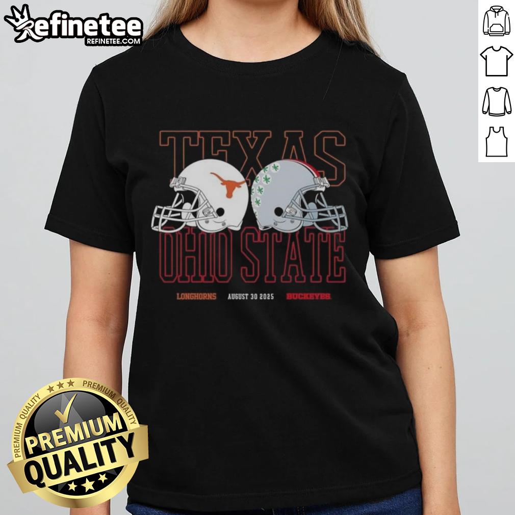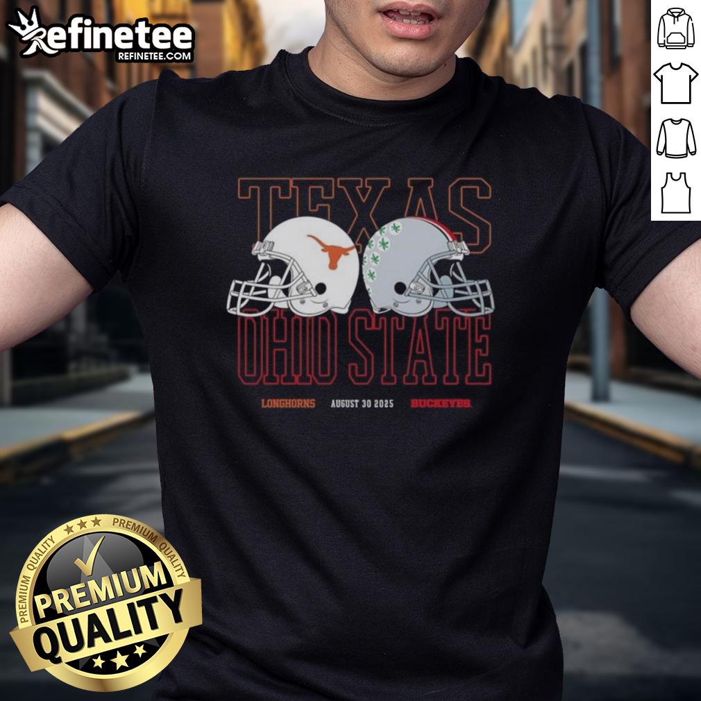 Official Texas Longhorns Vs Ohio State Buckeyes Helmets August 30 2025 T-Shirt