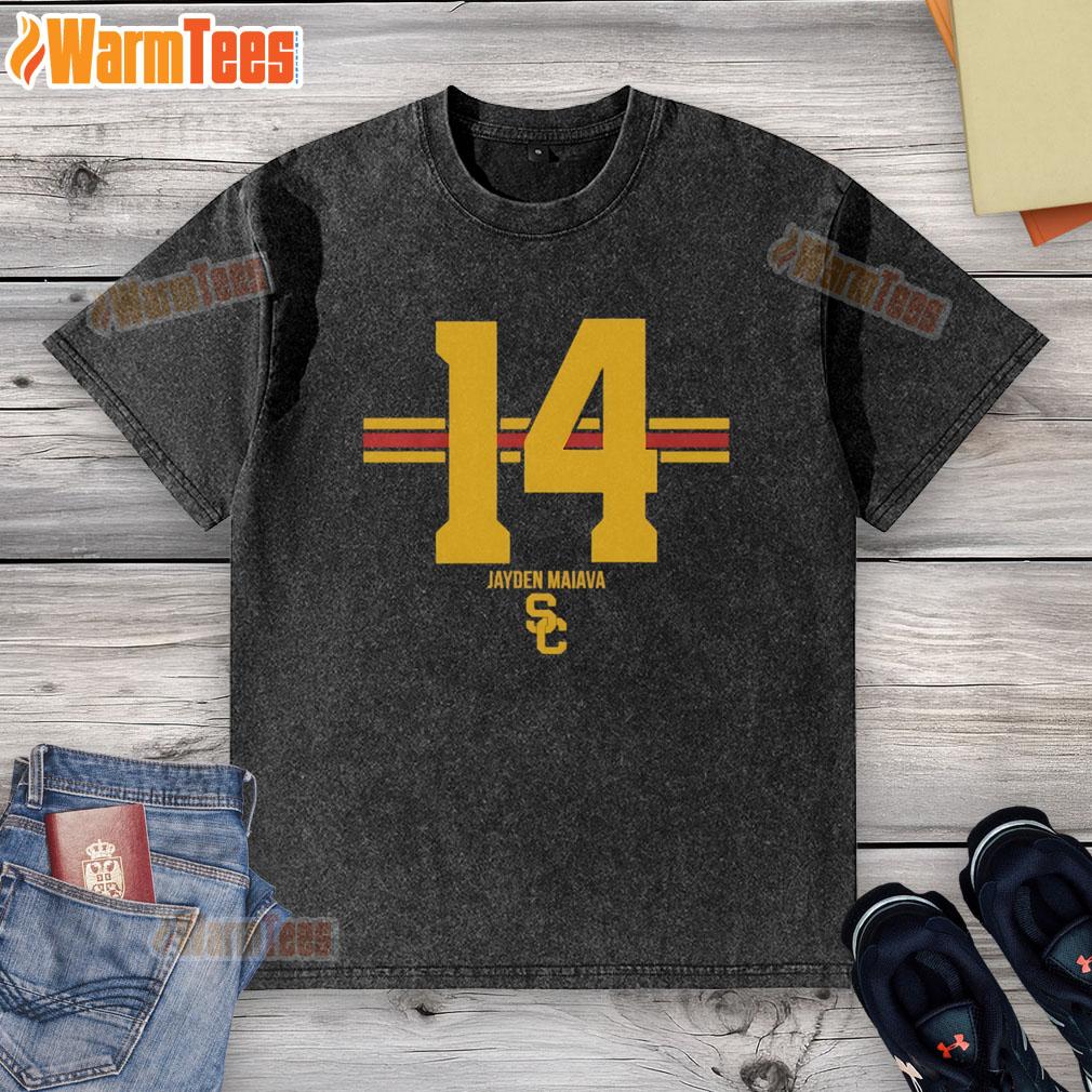 Official USC Trojans Football Jayden Maiava #14 Name Number Stripe T-Shirt