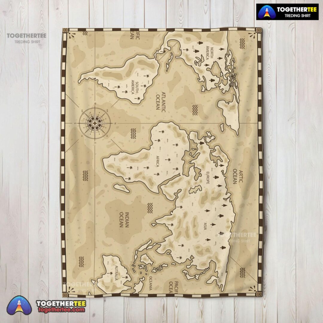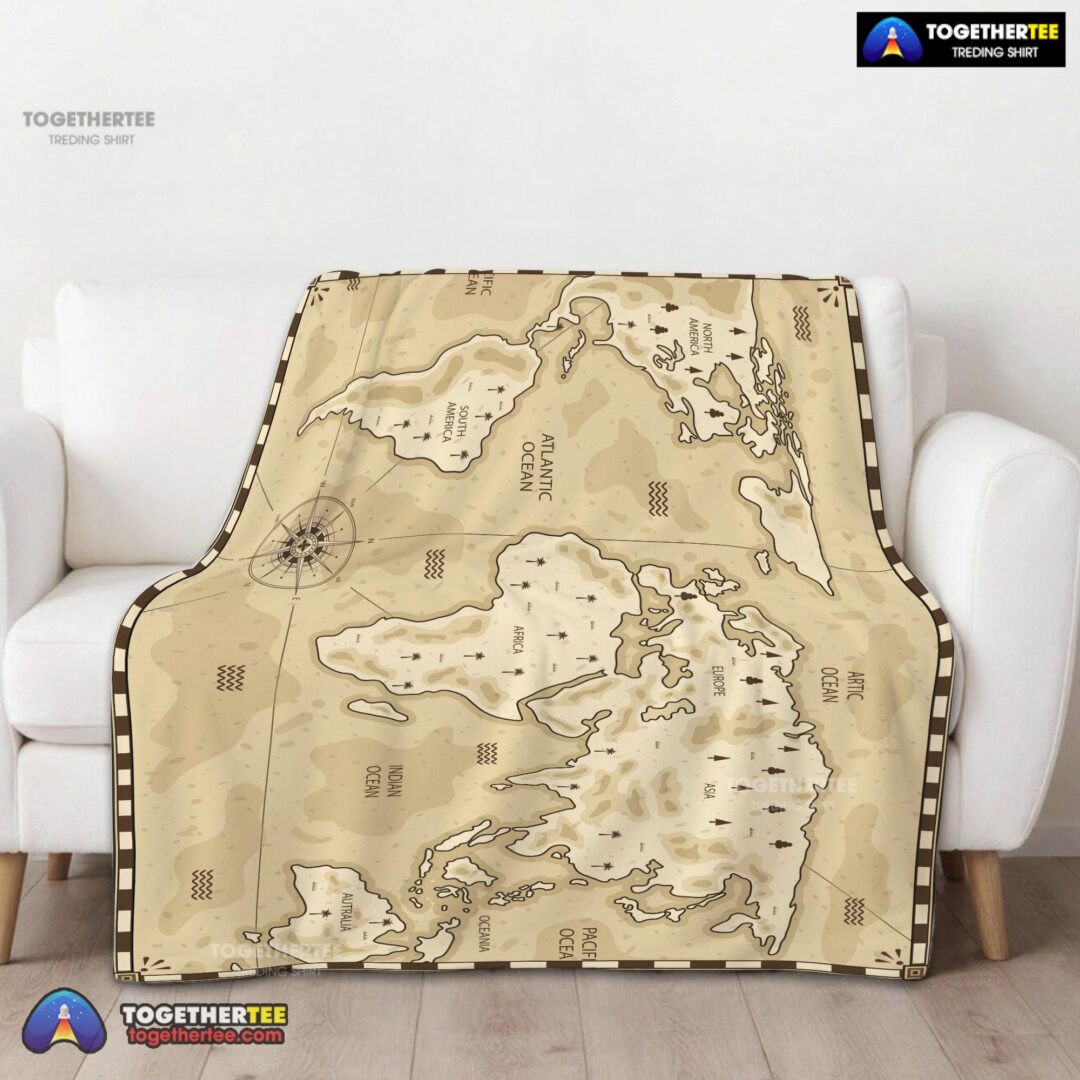 Official Vintage Pirate World Map Sepia Nautical Adventure Blanket Fleece Blanket