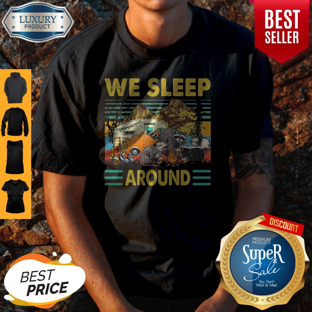 Official We sleep around camping Raccoon vintage shirt