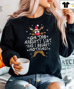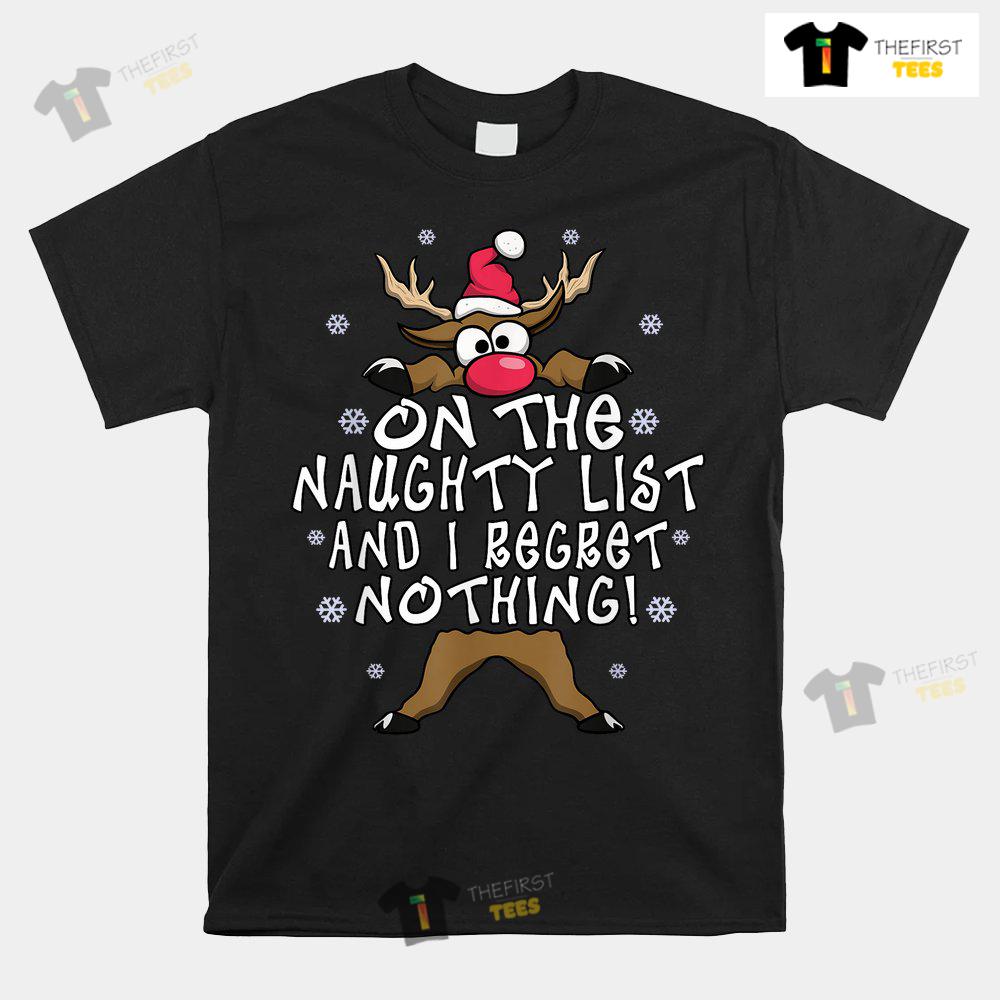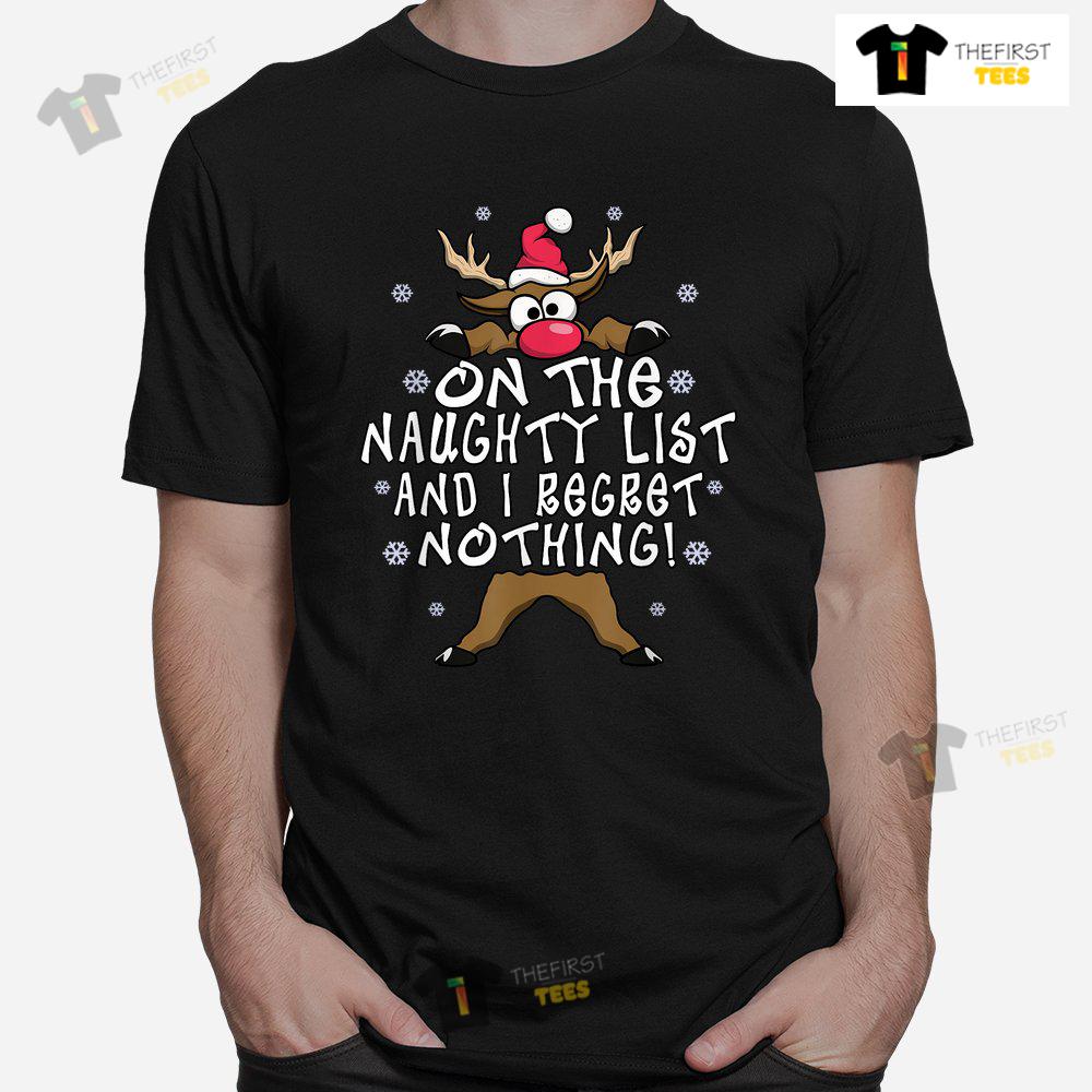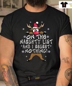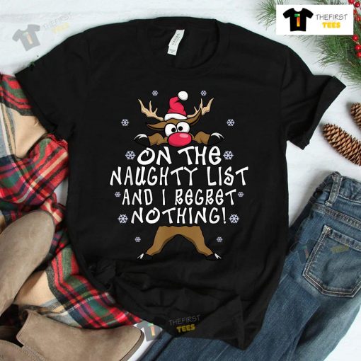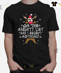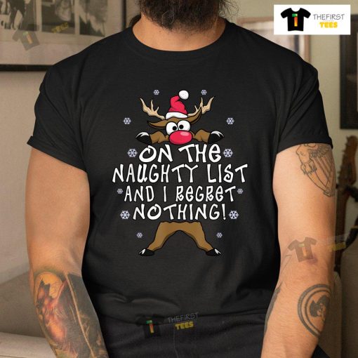 On The Naughty List And I Regret Nothing Reindeer Christmas T-shirt