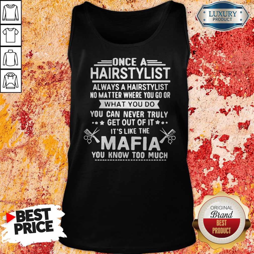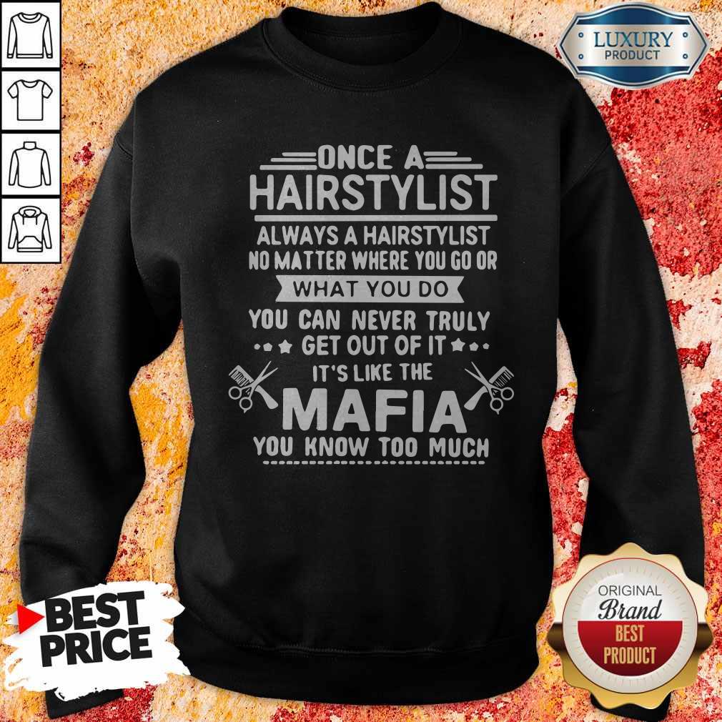 Once A Hairstylist Always A Hairstylist No Matter Where You Go Or What You Do You Can Never Truly Het Out Of It Its Like The Mafia You Know Too Much Shirt
