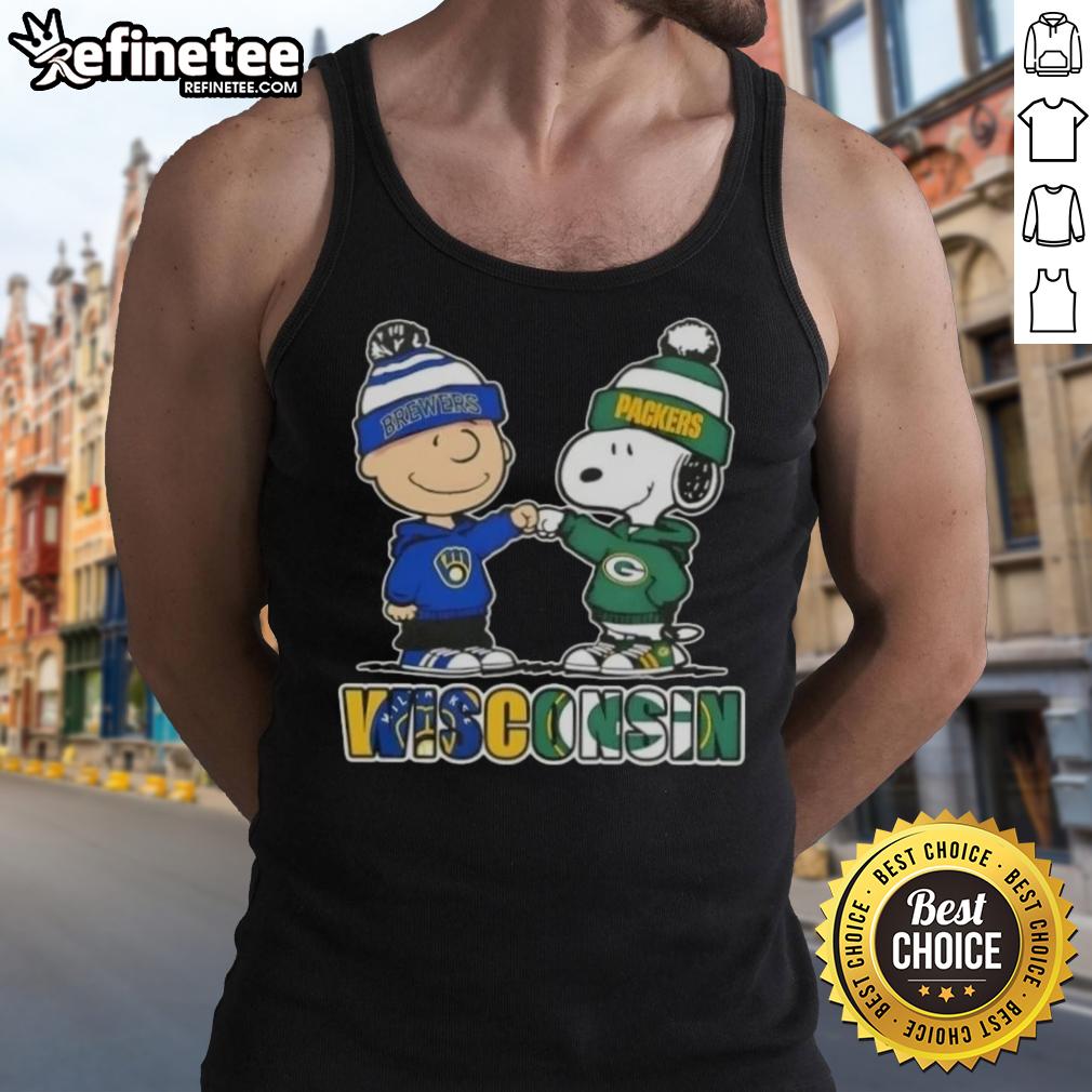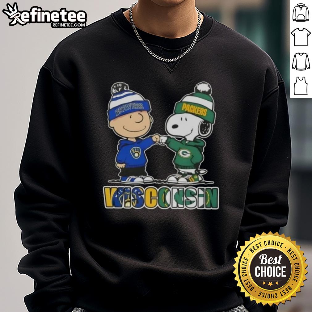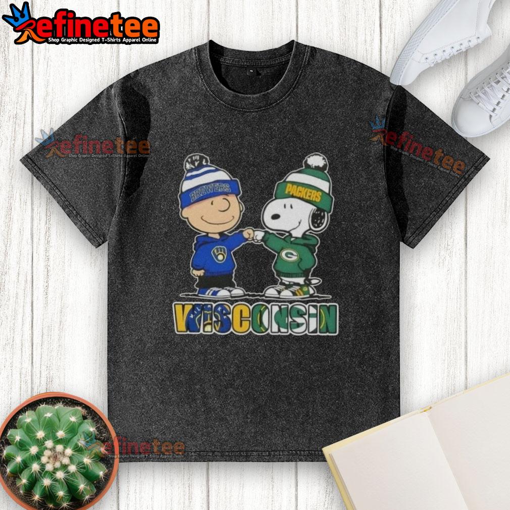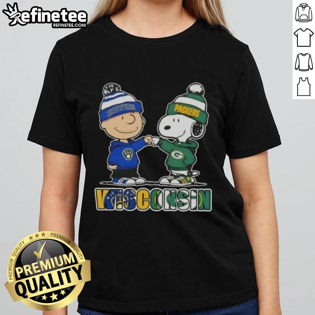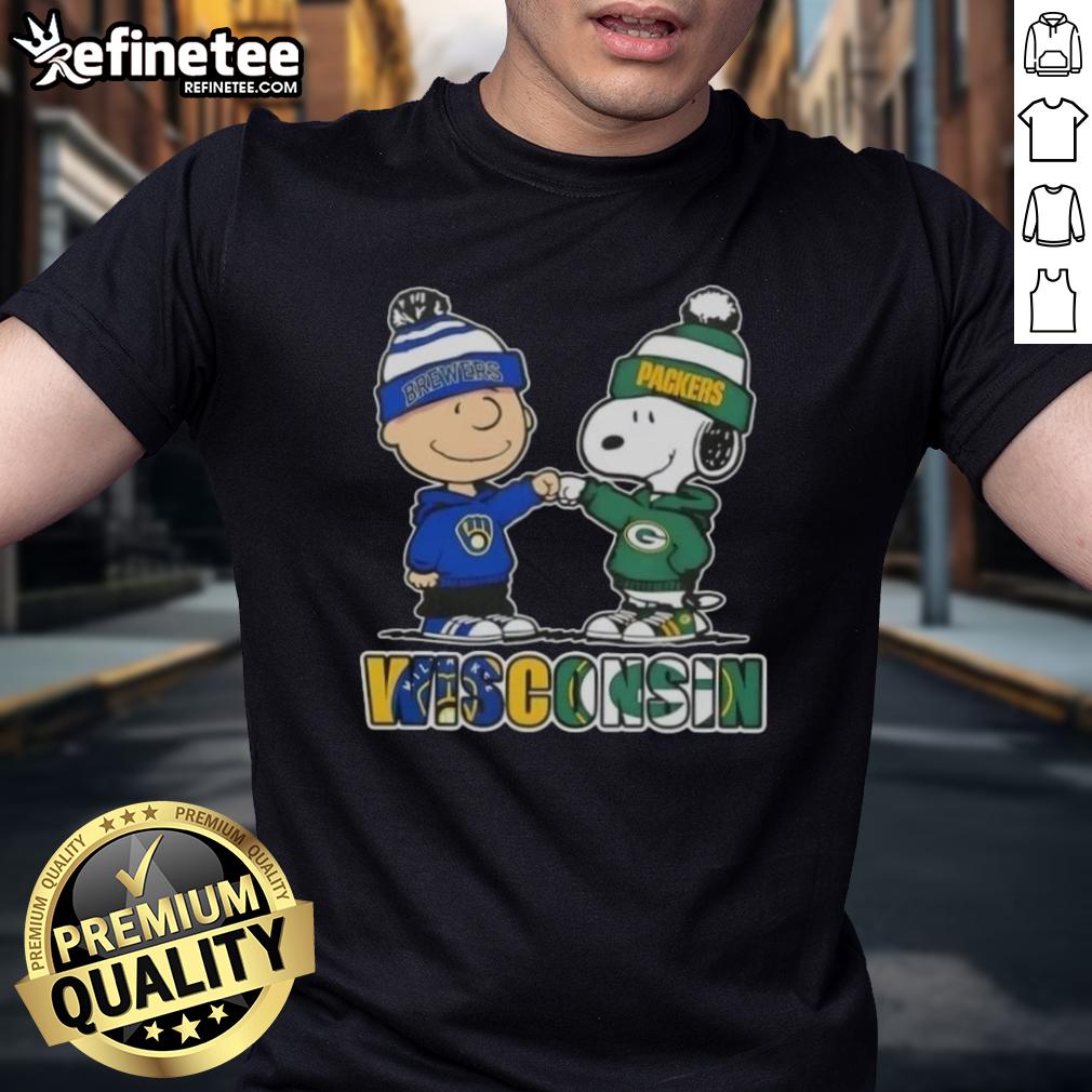 Original Charlie Brown Fist Bump Snoopy Wisconsin City Sports Milwaukee Brewers X Green Bay Packers T-Shirt