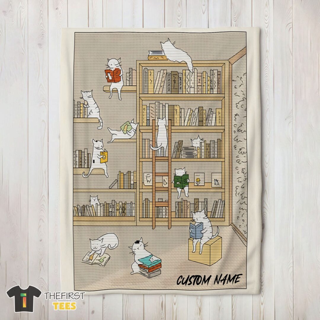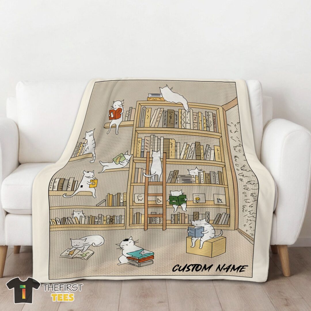 Original Cute Vintage Minimalist Cat Book Reading Blanket Fleece Customized Blanket