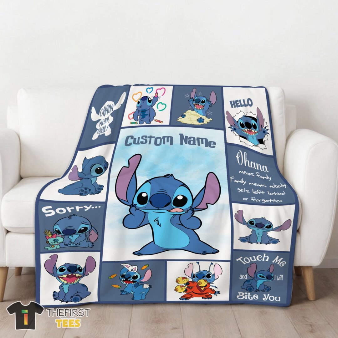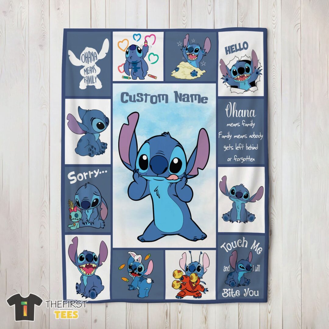 Original Disney Playful Stitch Collage Blanket Fleece Customized Blanket