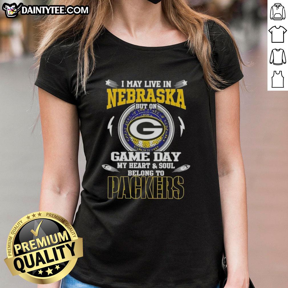 Original I May Live In Nebraska But On Game Day My Heart And Soul Belongs To Green Bay Packers T-Shirt
