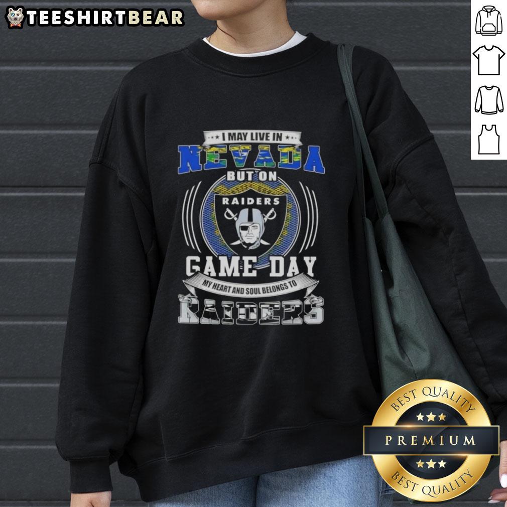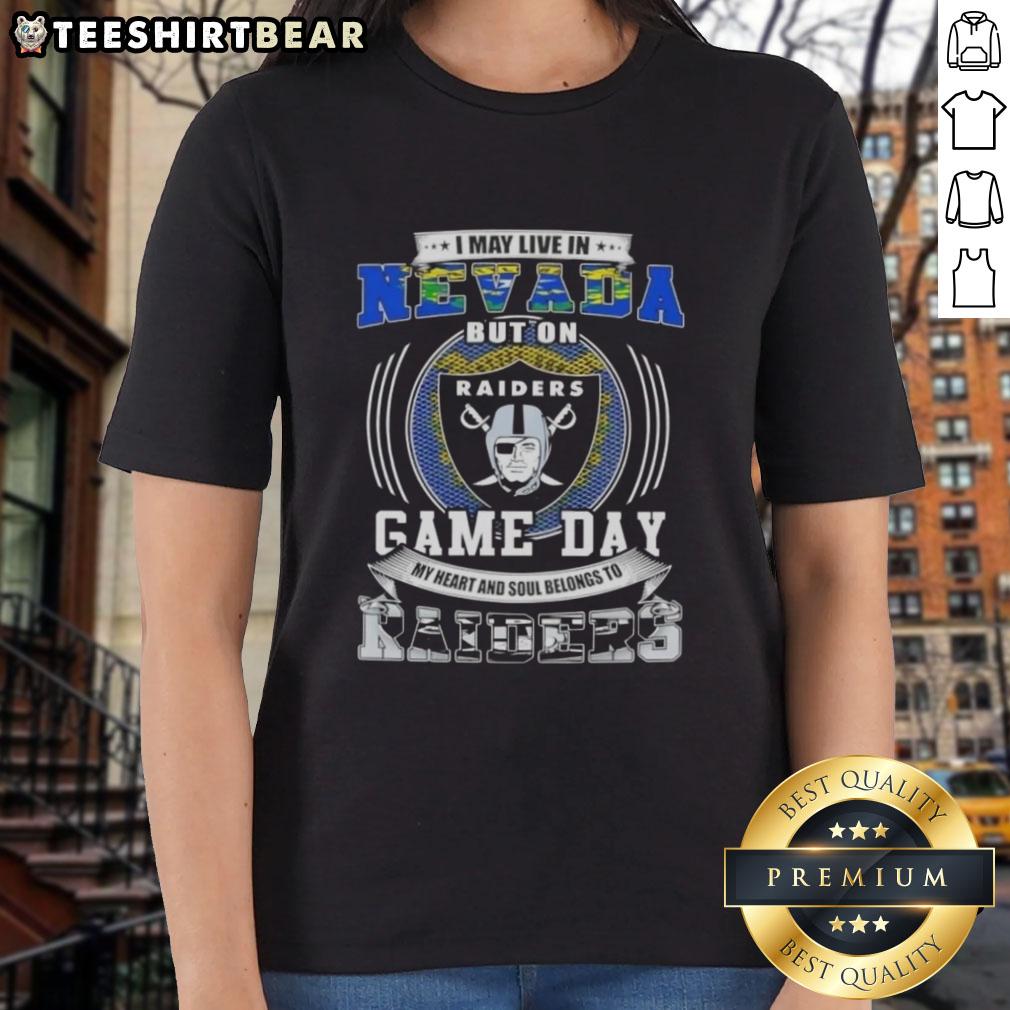 Original I May Live In Nevada But On Game Day My Heart And Soul Belongs To Las Vegas Raiders Football T-Shirt