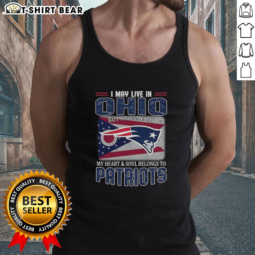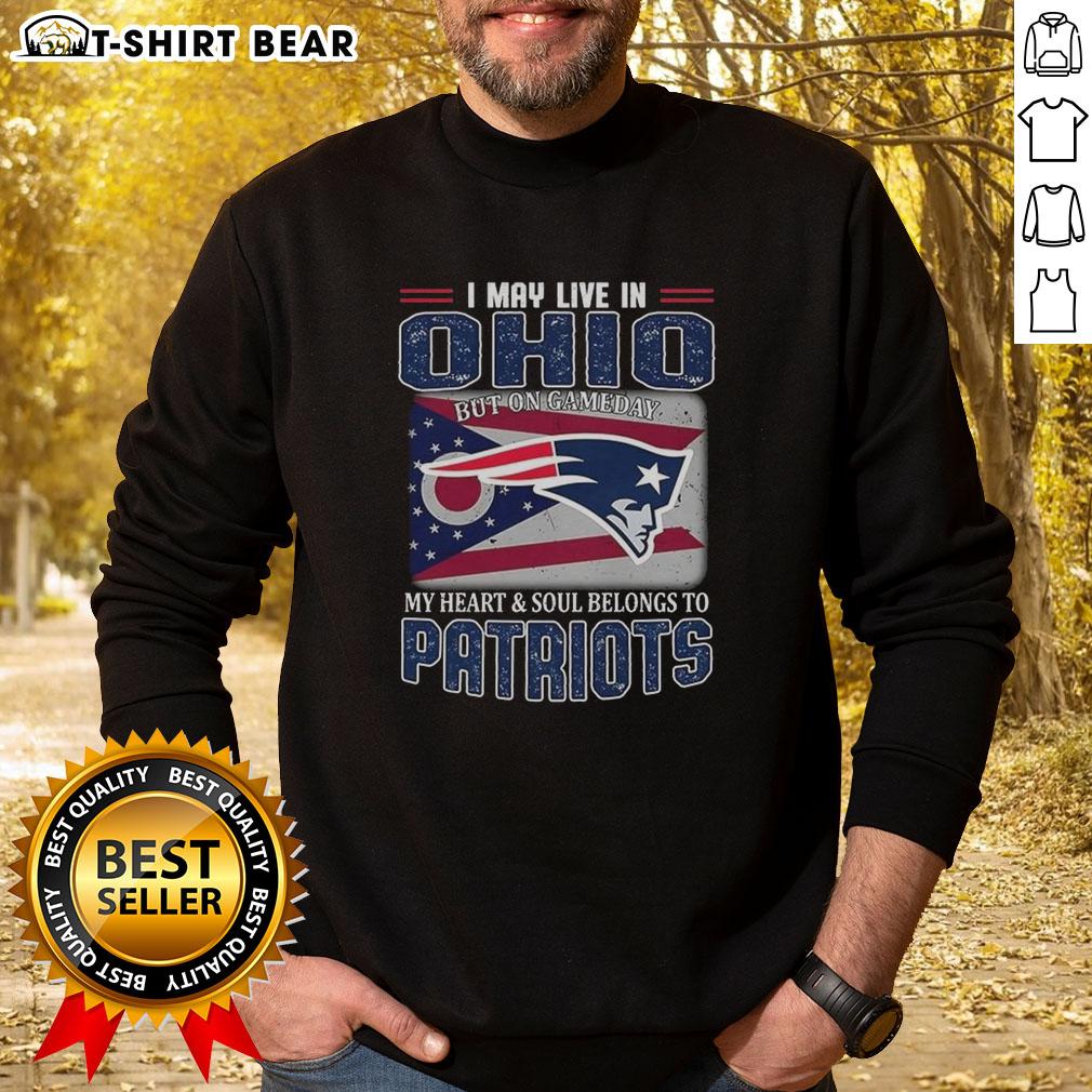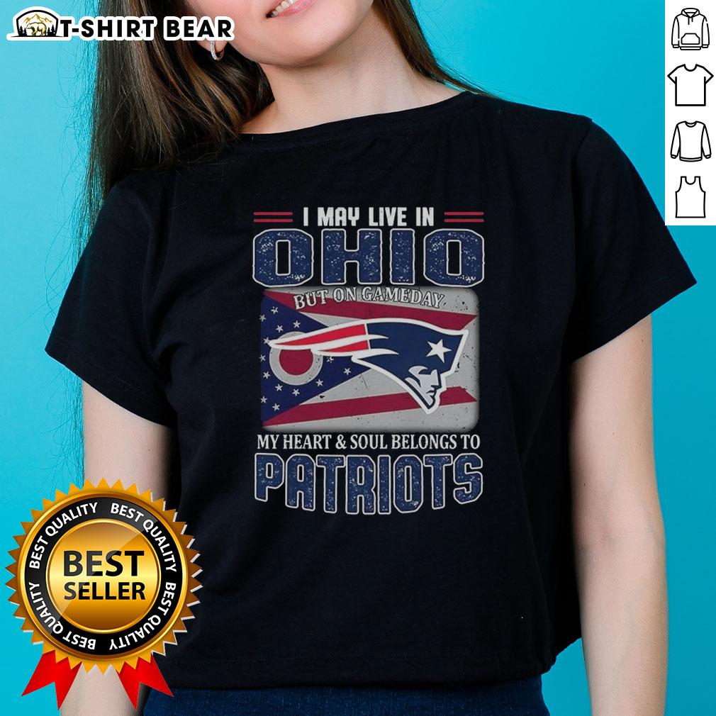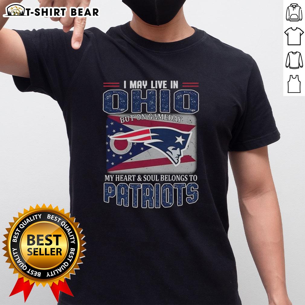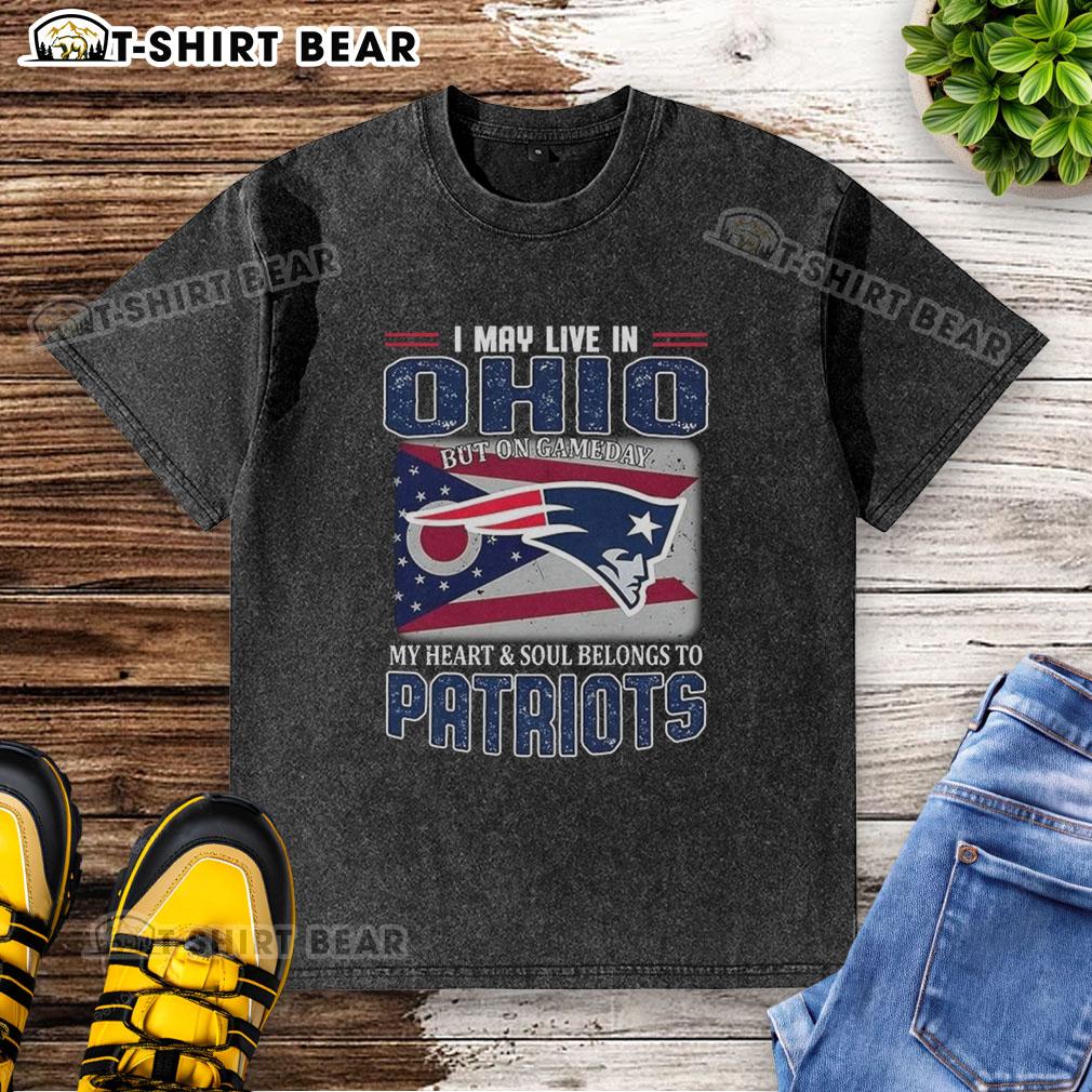 Original I May Live In Ohio But On Gameday My Heart And Soul Belongs To New England Patriots Flag T-Shirt