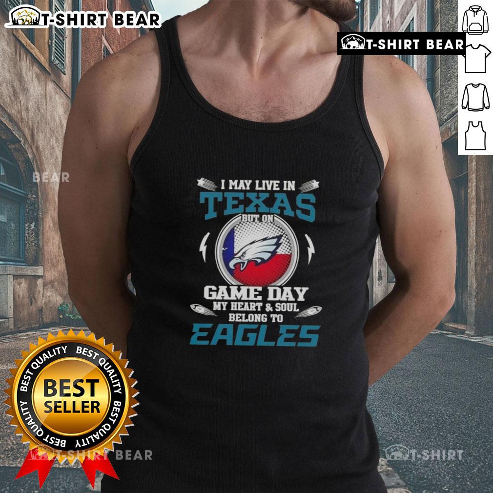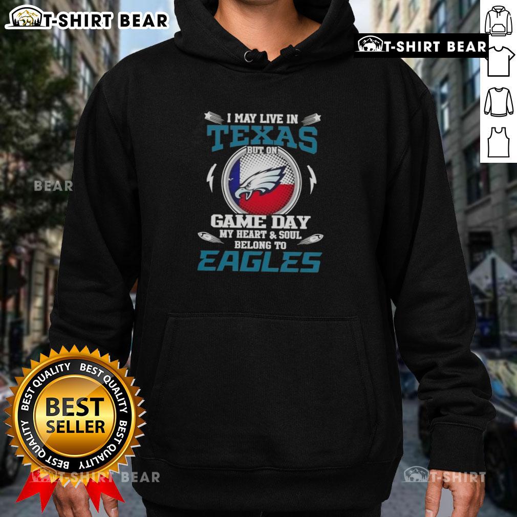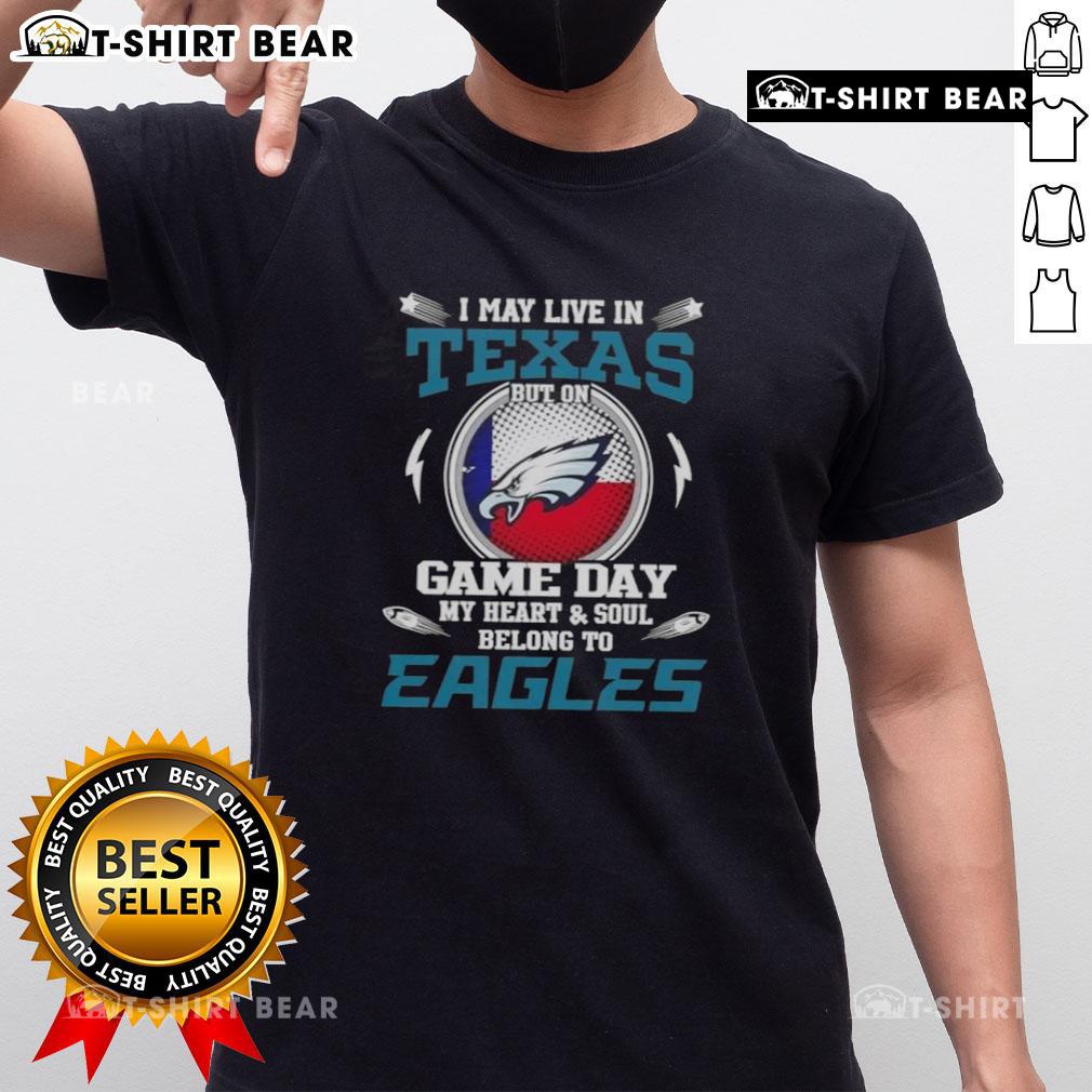 Original I May Live In Texas But On Game Day My Heart And Soul Belongs To Philadelphia Eagles T-Shirt