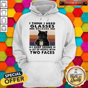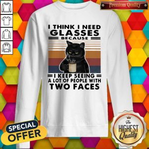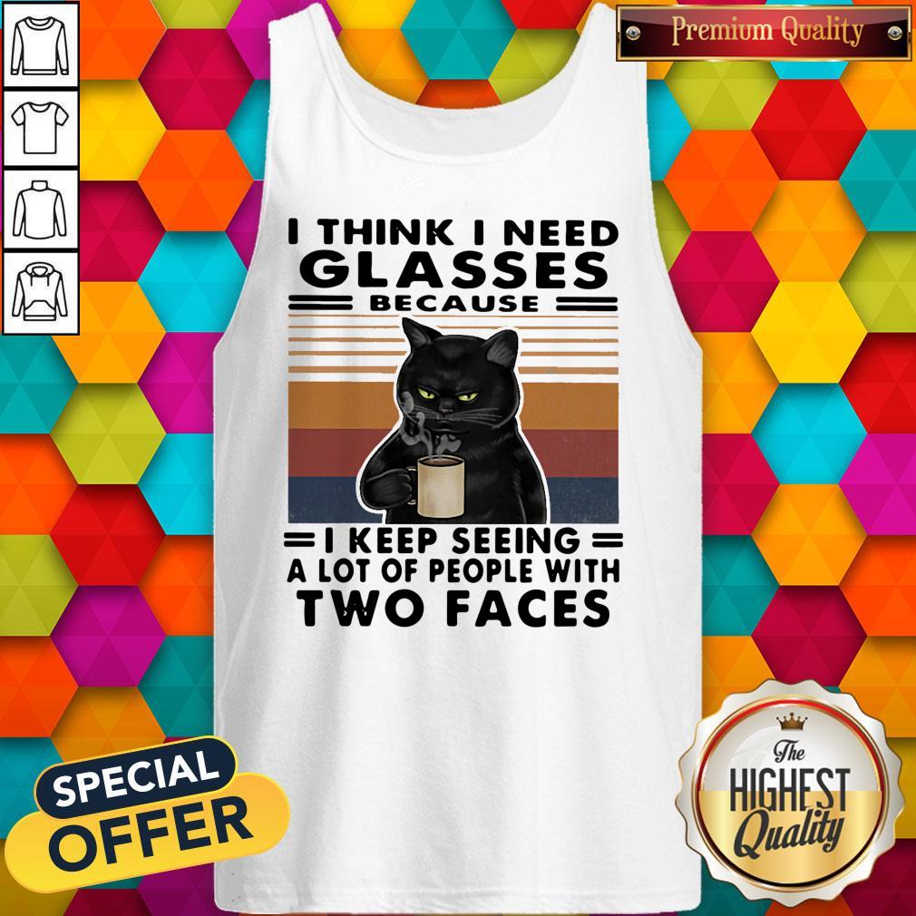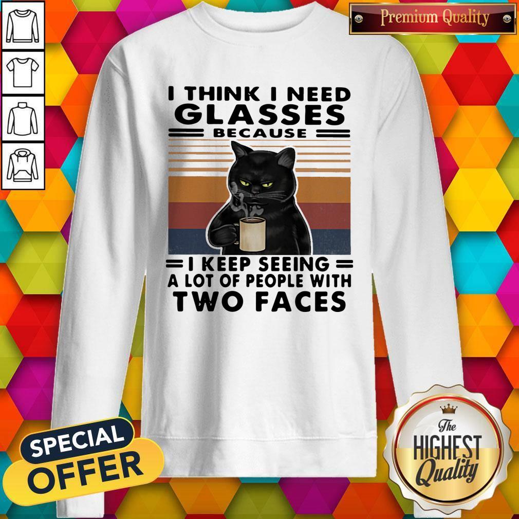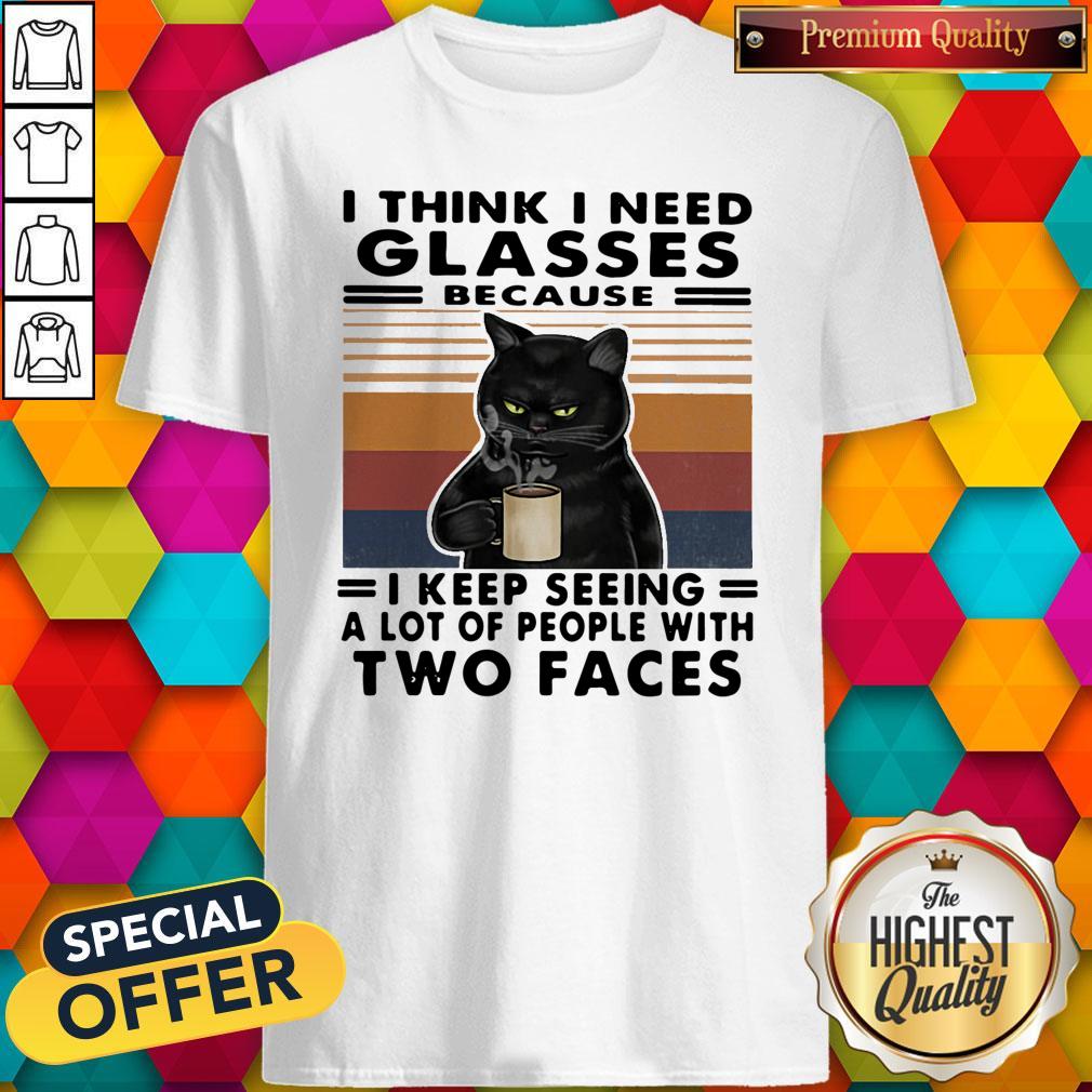 Original I Think I Need Glasses Because I Keep Seeing A Lot Of People With Two Faces Black Cat Vintage Retro Shirt
