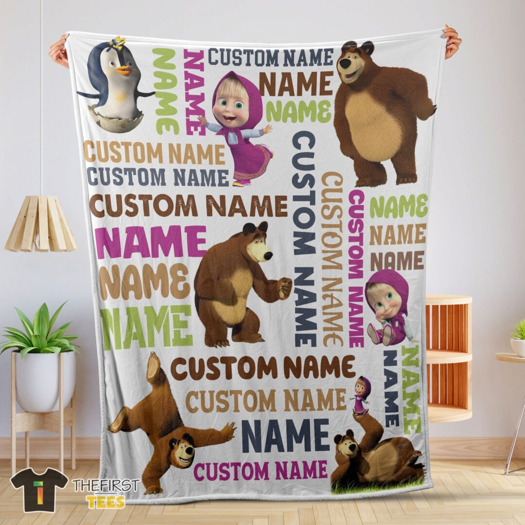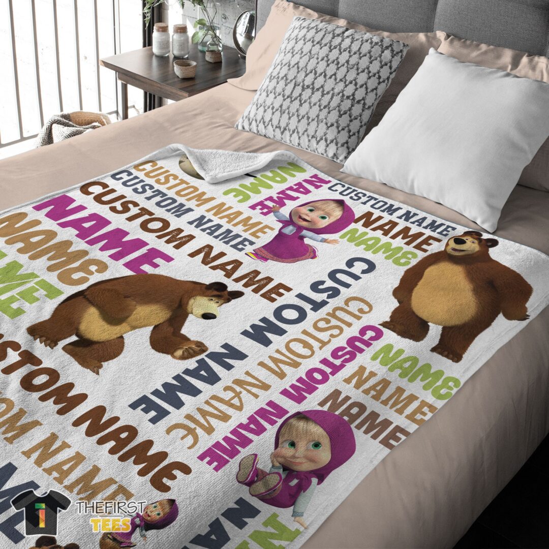 Original Personalized Masha And The Bear Blanket Fleece Customized Blanket