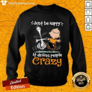 Original Snoopy And Charlie Brown Just Be Happy It Drives People Crazy Shirt