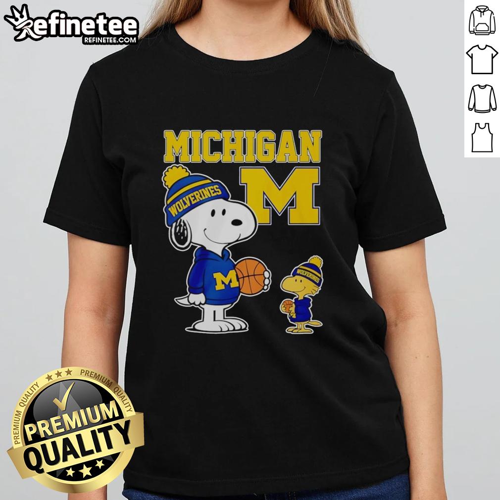 Original Snoopy And Woodstock Wearing Michigan Wolverines Jersey T-Shirt