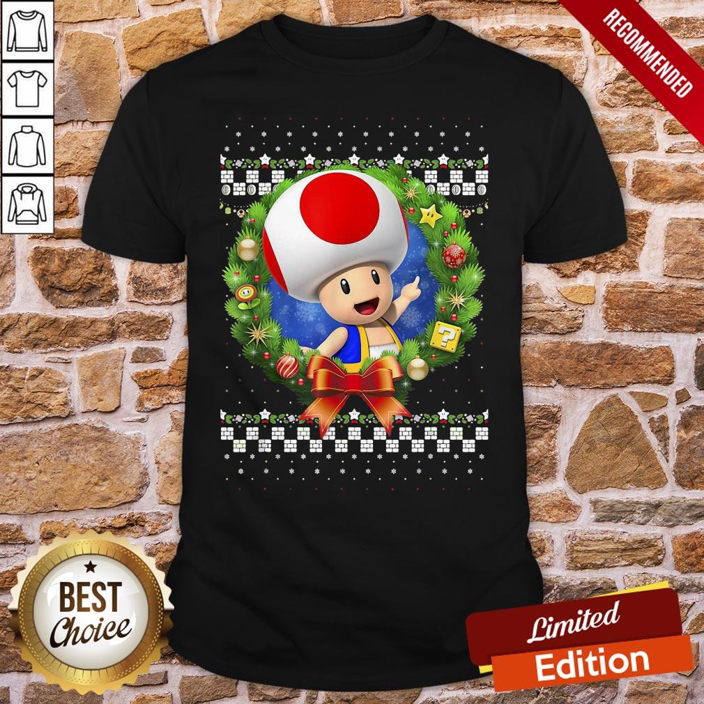 Original Super Mario 3D Toad Christmas Wreath Graphic Shirt