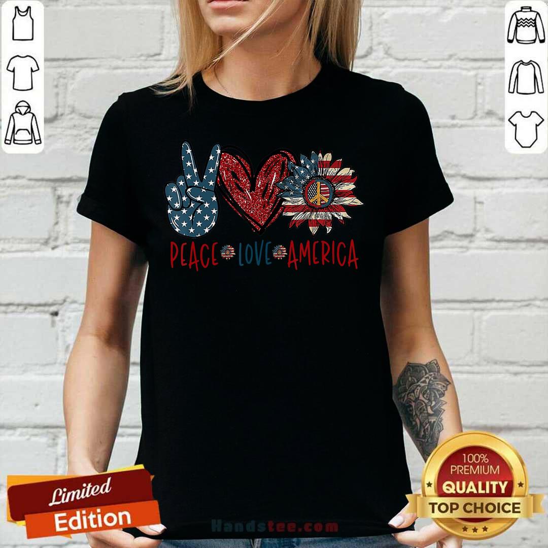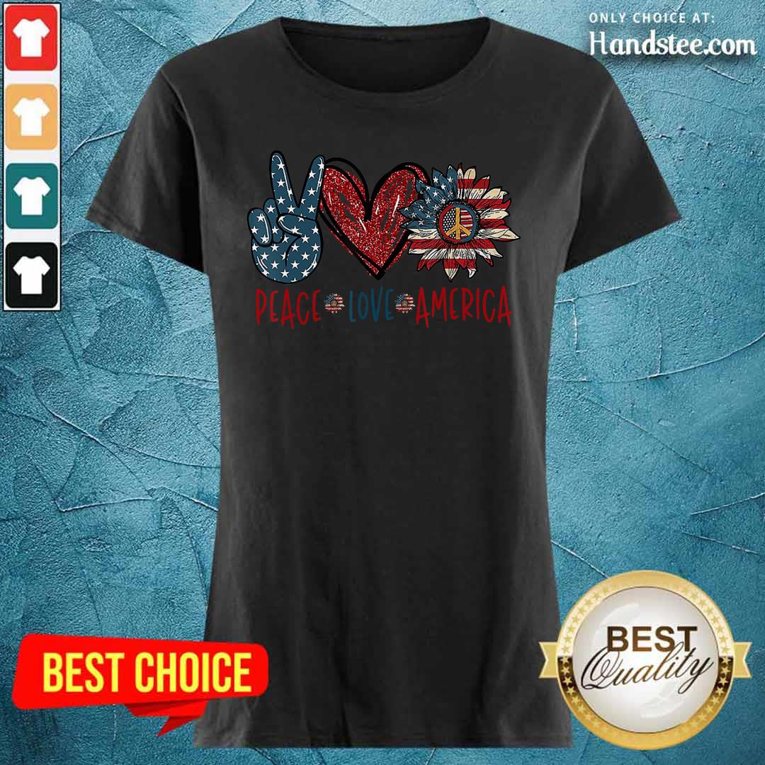 Peace Love America 4th Of July Sunflower Heart Shirt