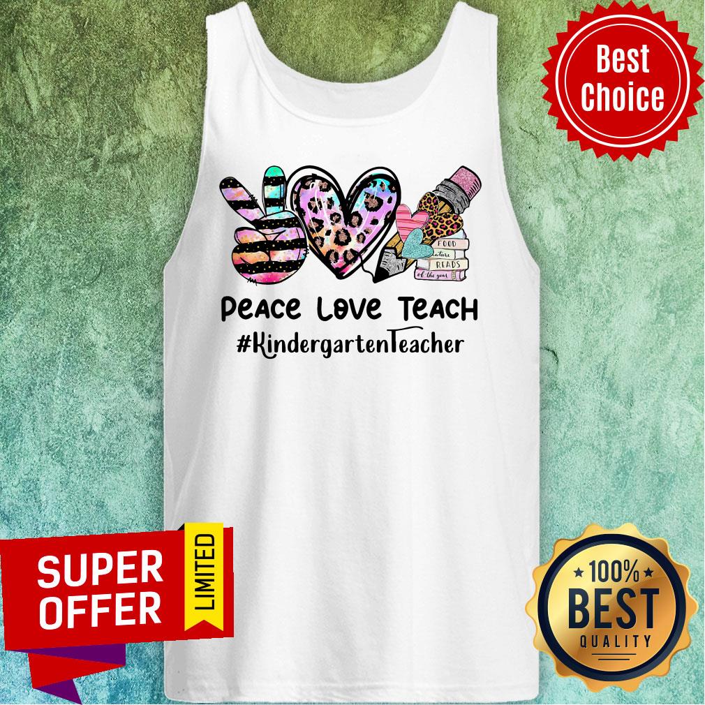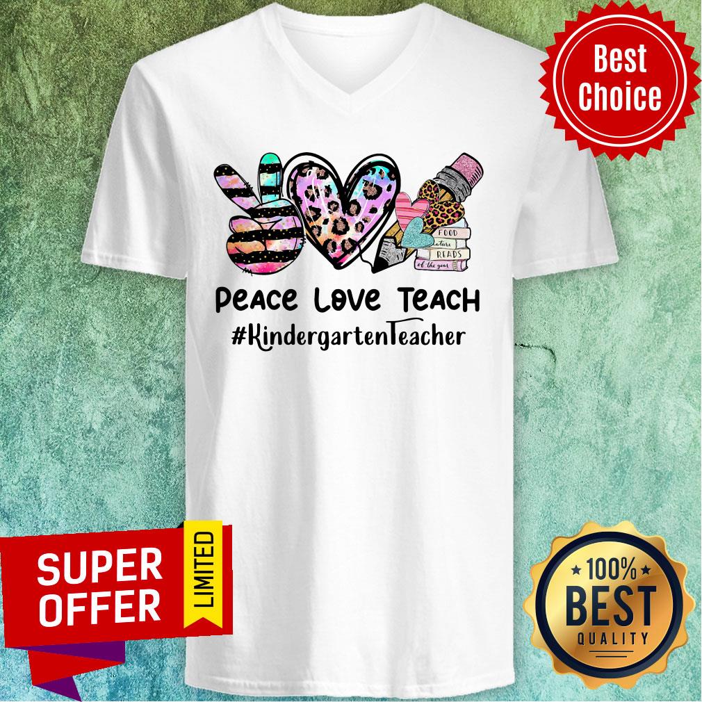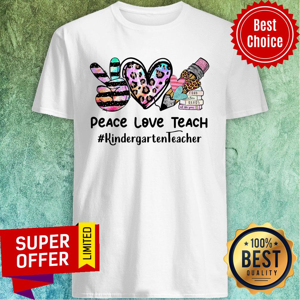 Peace Love Teach Kindergarten Teacher Leopard Shirt