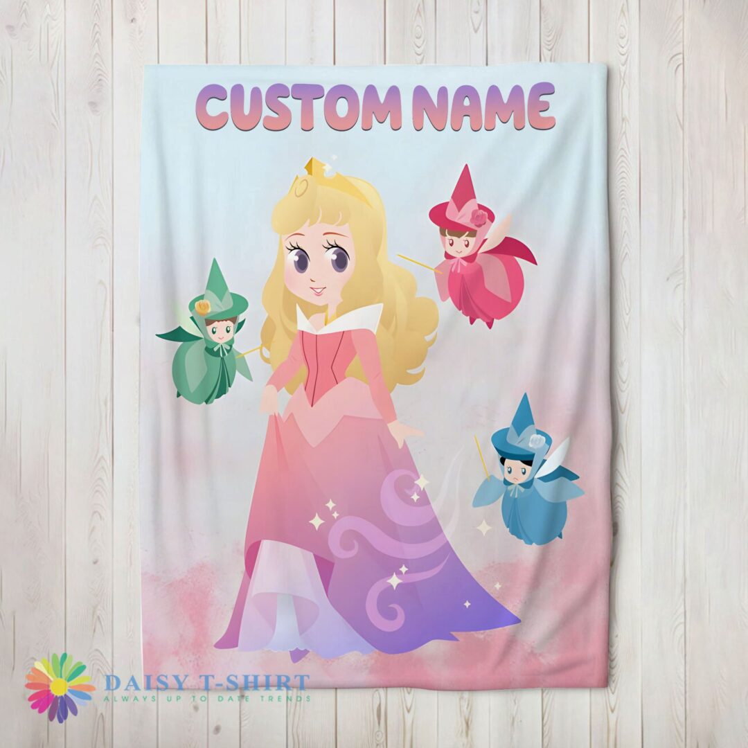 Perfect Cute Hot Disney Chibi Aurora Sleeping Beauty Pastel-Colored Blanket Fleece Customized Blanket
