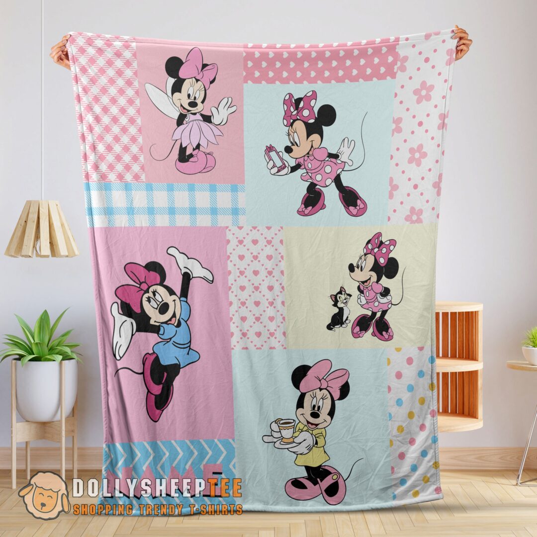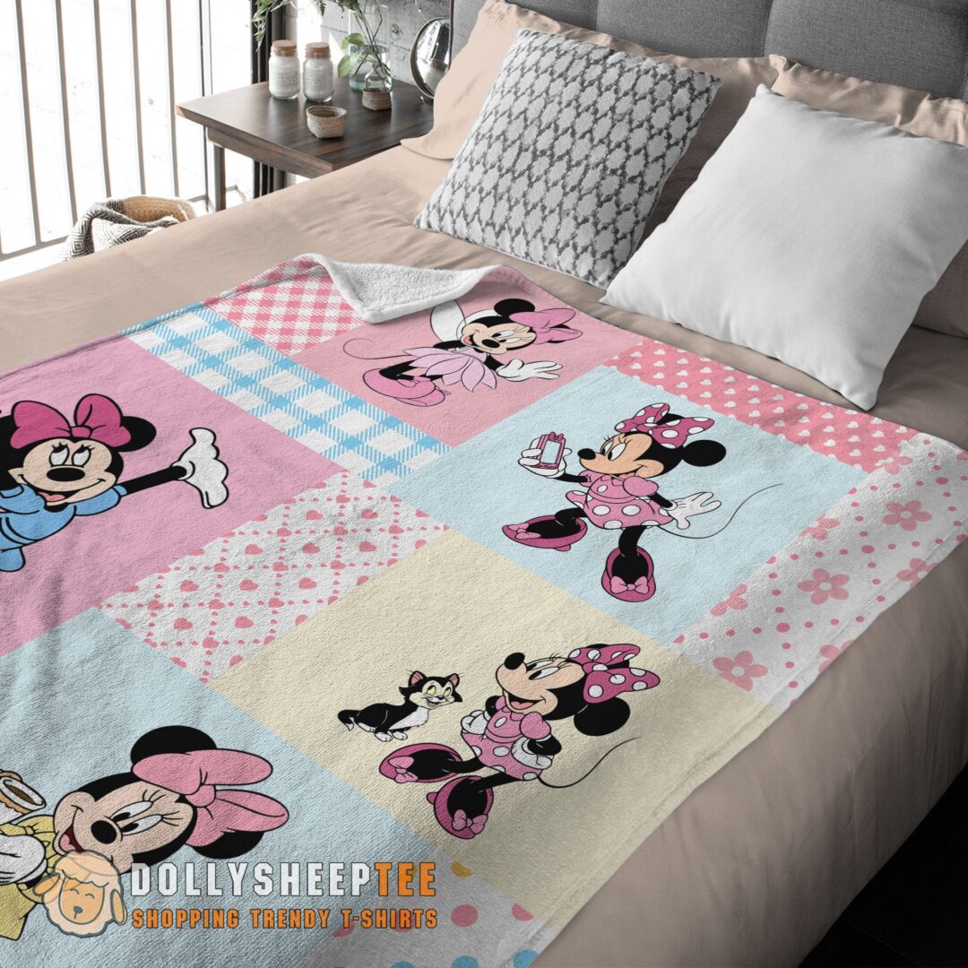 Perfect Disney Minnie Mouse Patchwork Pattern Blanket Fleece Customized Blanket