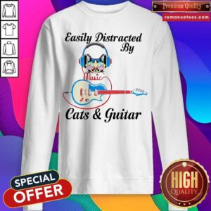 Perfect Official Easily Distracted By Music Cats And Guitar Shirt