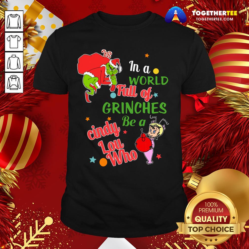 Perfect The Grinch In A World Full Of Grinches Be A Cindy Lou Who Christmas Shirt