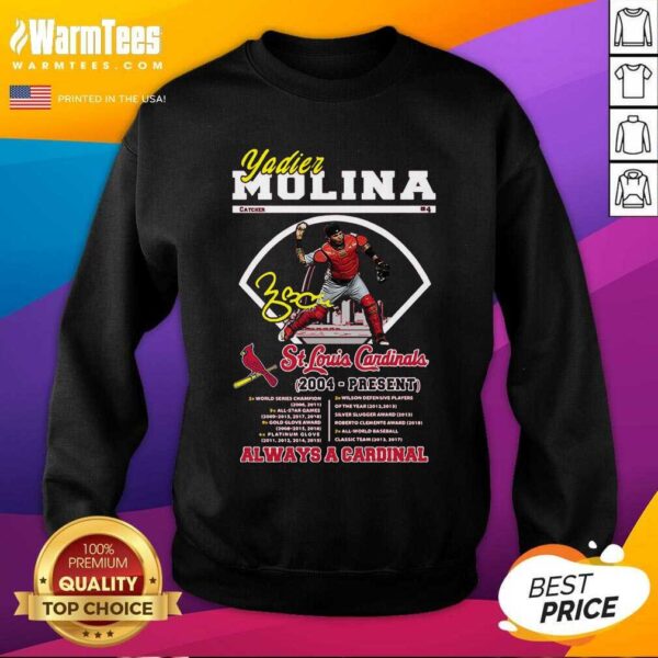 Perfect Yadier Molina St Louis Cardinals 2004 Present Always A Cardinal Shirt