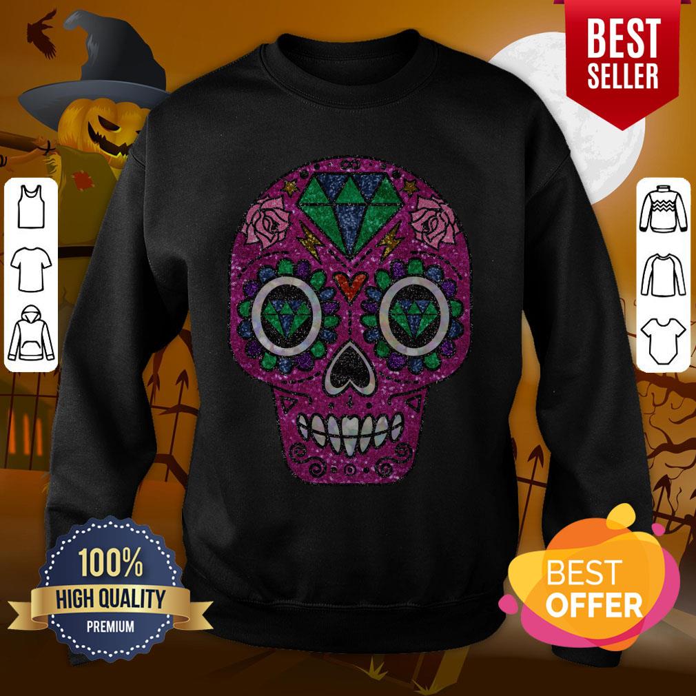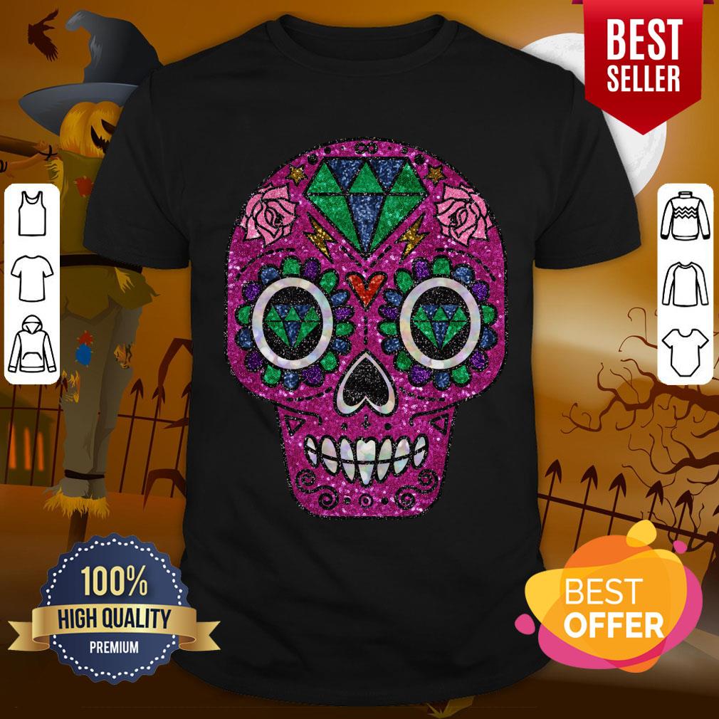Pink Glitter Sugar Skull Day Of The Dead Shirt