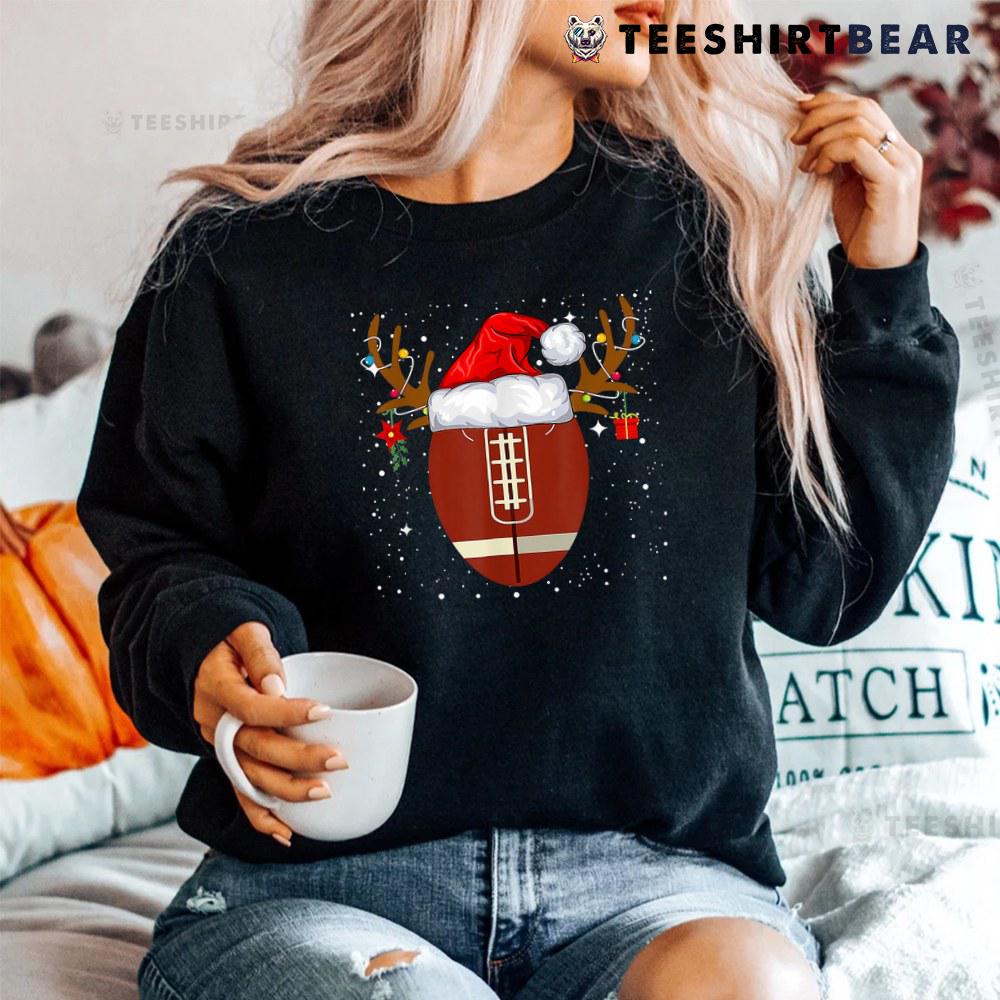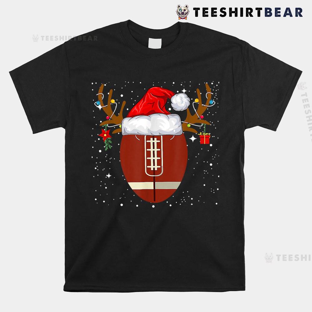 Santa Hat Reindeer Christmas Football Ball Shirt